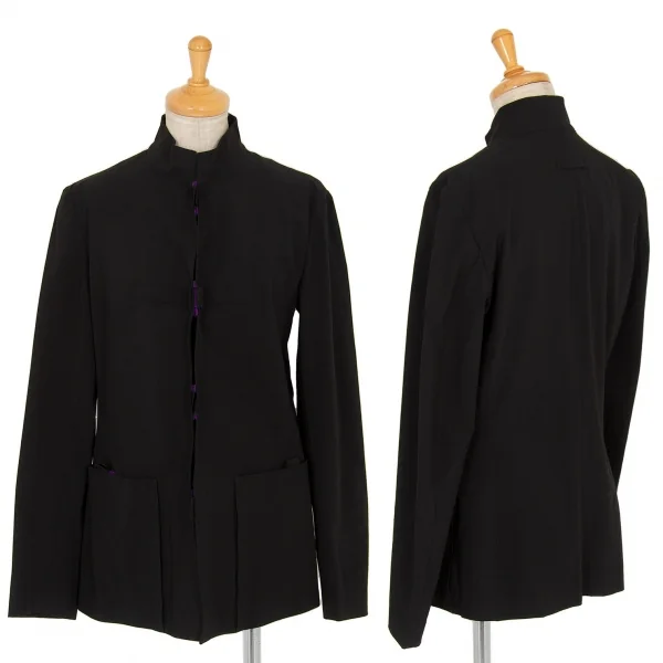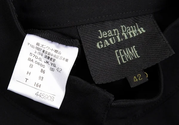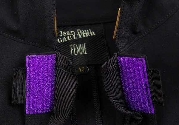 ジャンポールゴルチエ ファムJean Paul GAULTIER FEMME ストレッチレーヨンベルクロ留めスタンドカラージャケット 黒42
