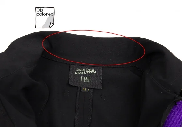 襟元に多少色褪せ、裏側に変色があります(写真参照)。その他目立ったシミ、汚れ、ほつれ等ありません。クリーニング済み