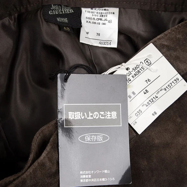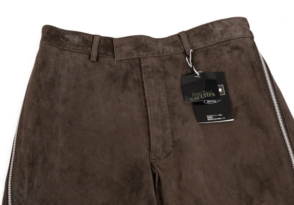 ジャンポールゴルチエ オムJean Paul GAULTIER HOMME スウェードレザーサイドジップパンツ 茶48