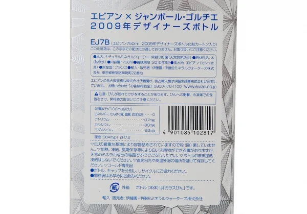 新品!ジャンポールゴルチエJean Paul GAULTIER 2009年エビアン デザイナーズボトルミネラルウォーター 青白750ml