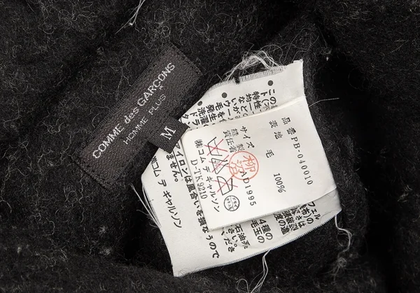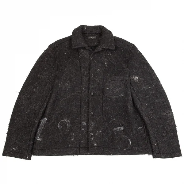コムデギャルソン オムプリュスCOMME des GARCONS HOMME PLUS ハンドフェルトナンバリングプリントジャケット 黒グレーM