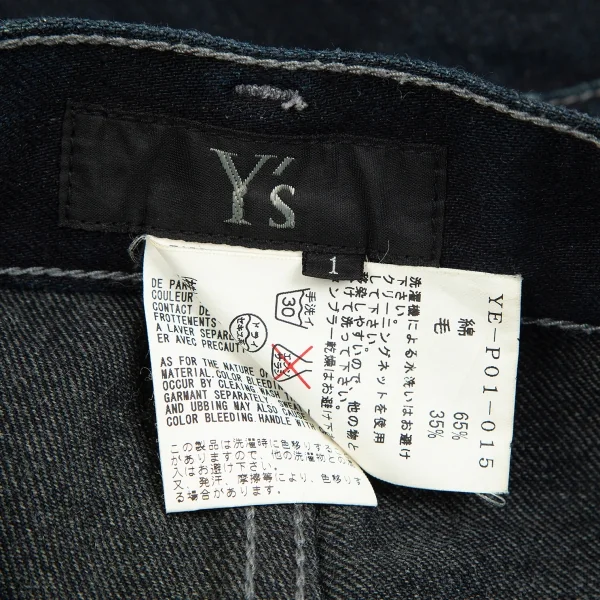 ワイズY's ウール混ジップポケットデニムパンツ インディゴ1