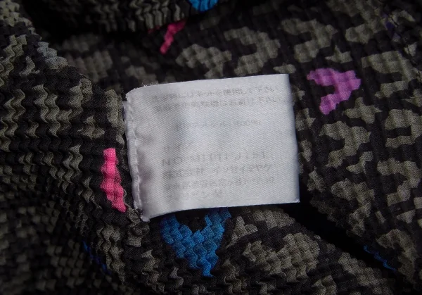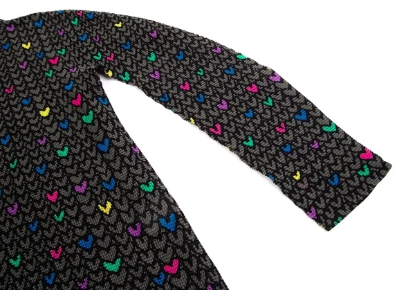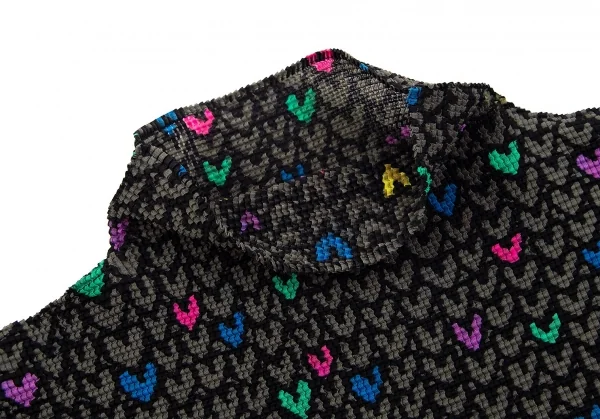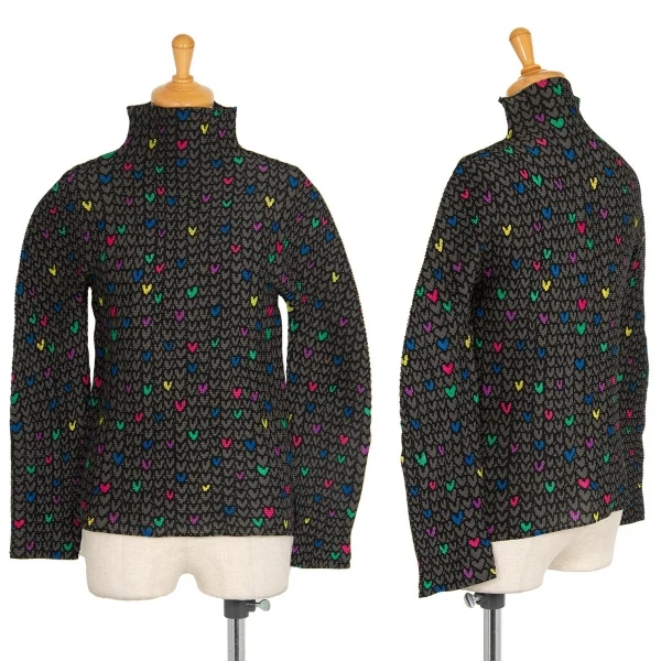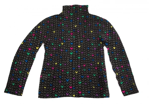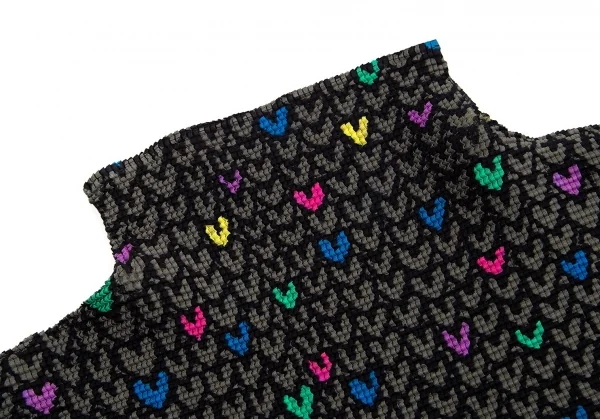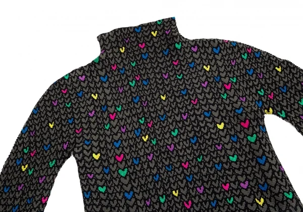 イッセイミヤケ ミーISSEY MIYAKE me ハート総柄プリントボックスプリーツハイネックカットソー グレーマルチM位