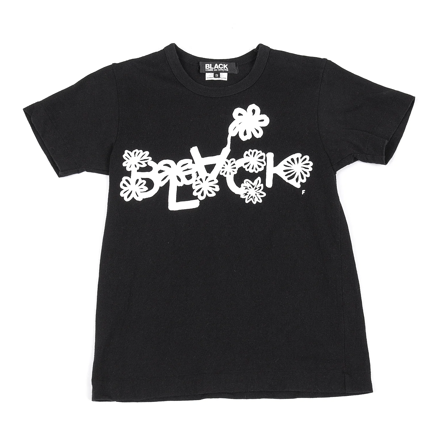 ブラックコムデギャルソンBLACK COMME des GARCONS フラワーロゴプリントTシャツ 黒S