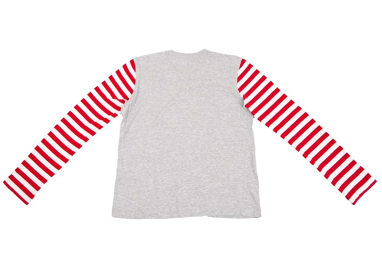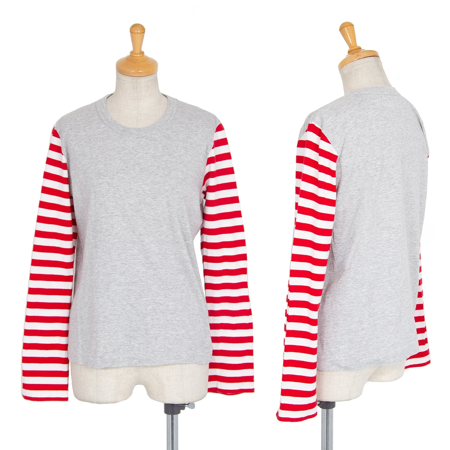 コムデギャルソンCOMME des GARCONS 袖ボーダー切替カットソー グレー白赤S