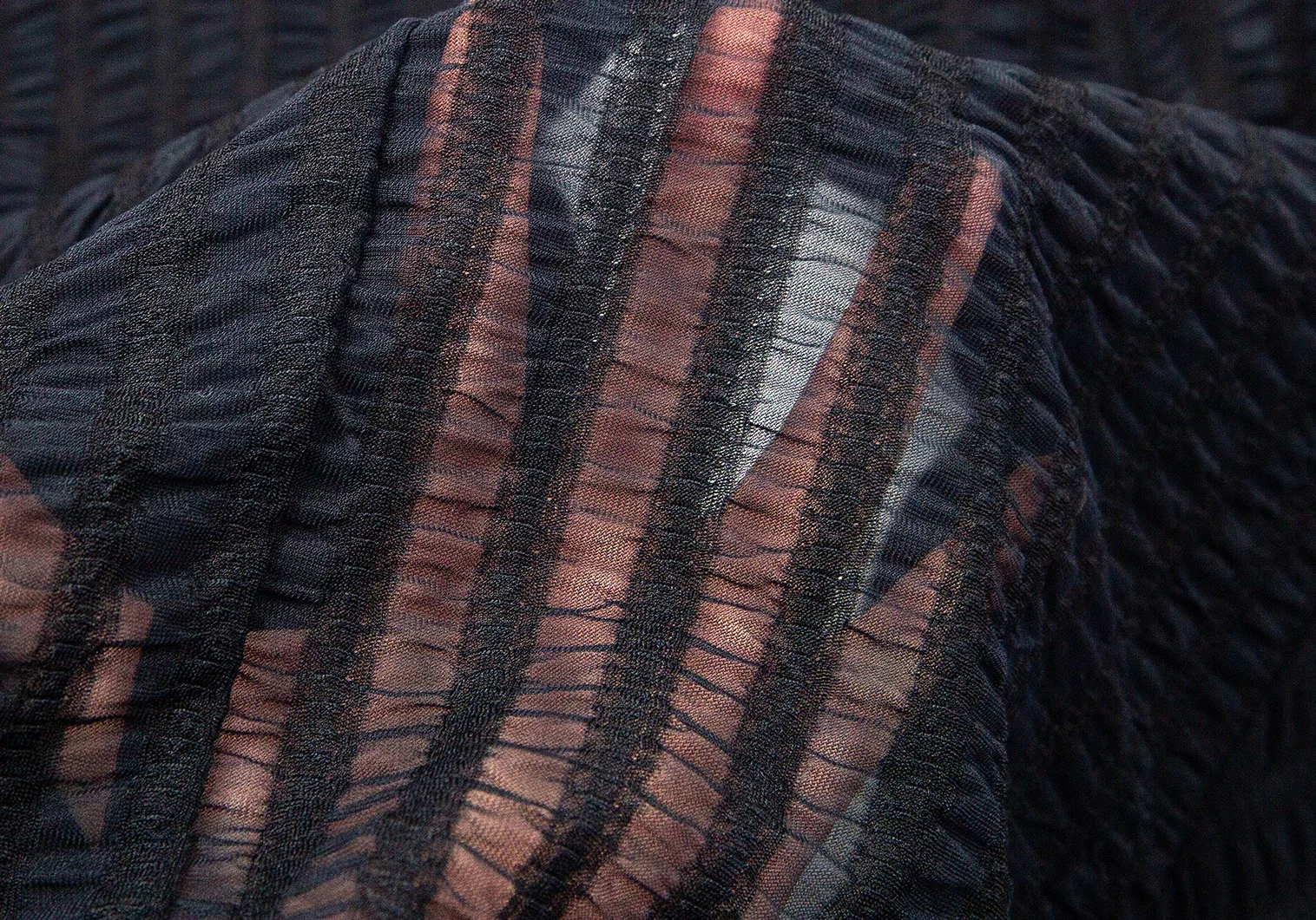 肩パッドあり。透け感のある生地です。品質表示タグが切り取られています。目立ったシミ、汚れ、ほつれ等なくいい状態です。クリーニング済み