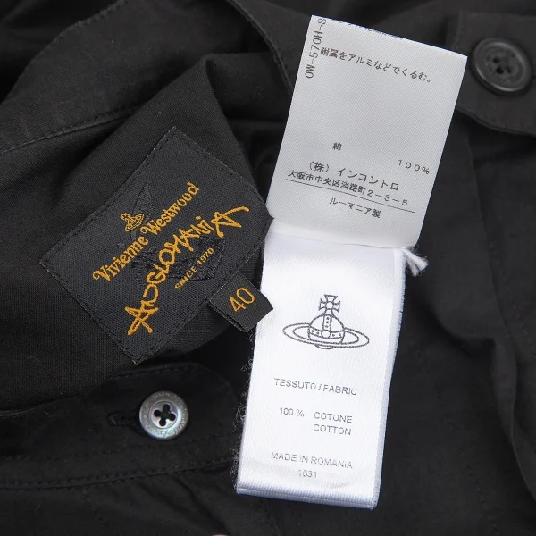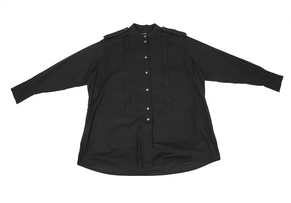 ヴィヴィアンウエストウッド アングロマニアVivienne Westwood ANGLOMANIA コットンビッグシルエットピンタックバンドカラーシャツ 黒40