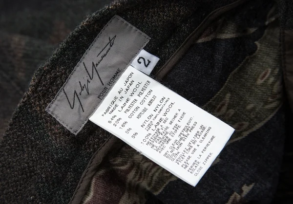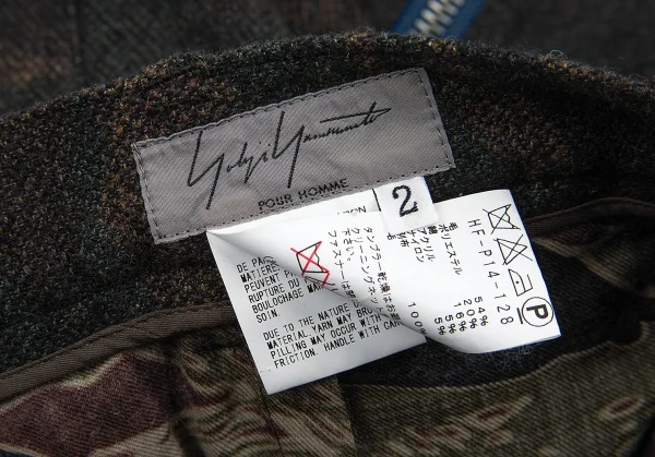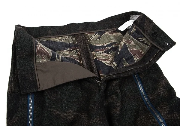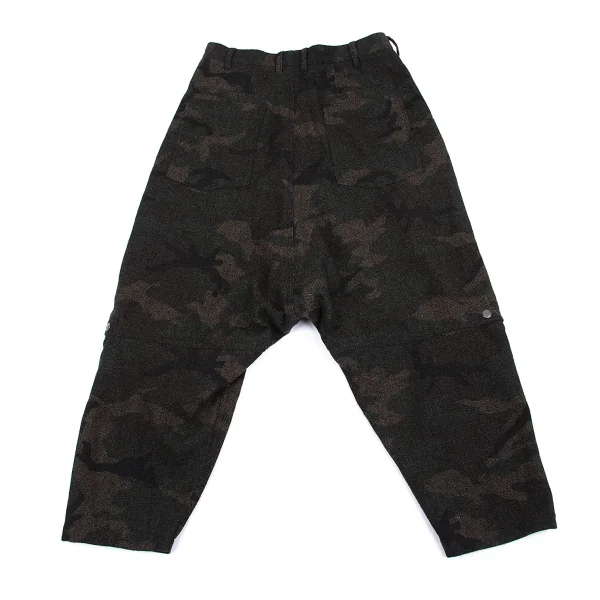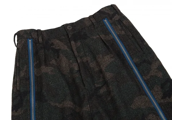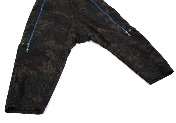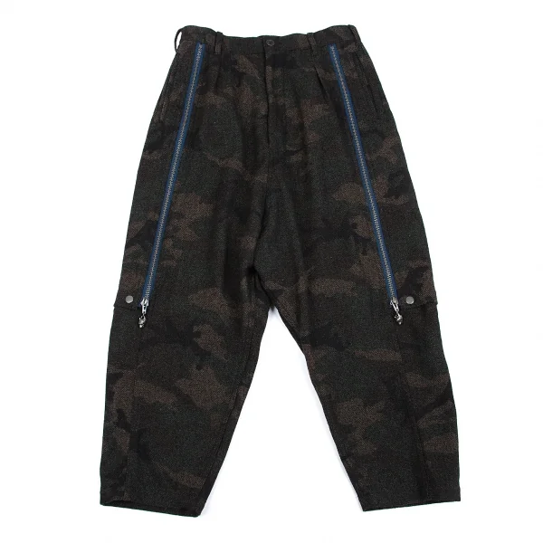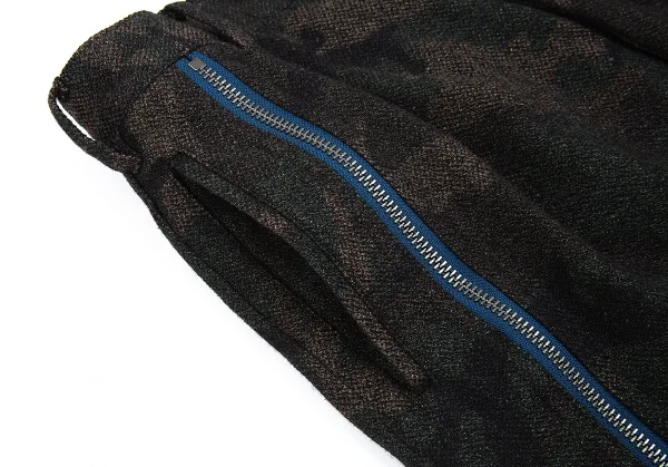 ヨウジヤマモト プールオムYohji Yamamoto POUR HOMME 混紡ウールカモフラジップデザインサルエルパンツ 茶カーキ2