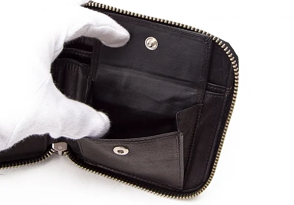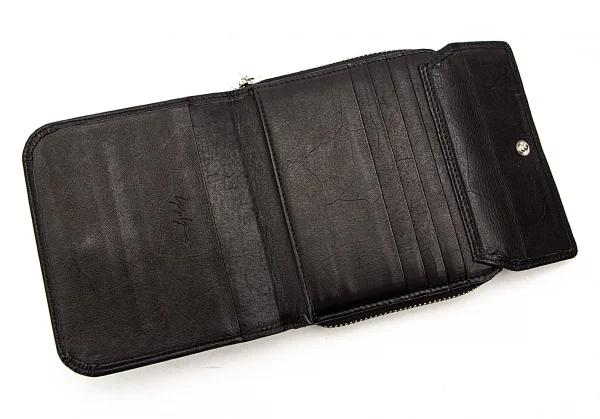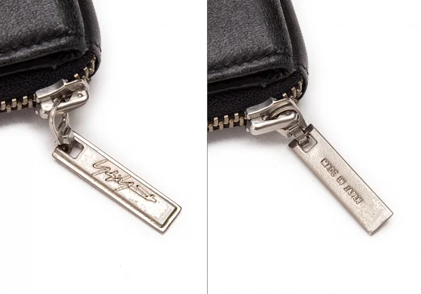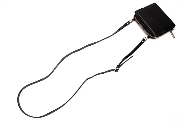 ヨウジヤマモトYohji Yamamoto レザーショルダーストラップ付き二つ折り財布 黒