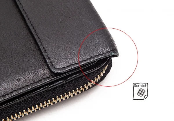 ショルダーストラップが付属します。フラップ内側:カード入れ×5。ジップ内側:カード入れ×4、お札入れ×2、小銭入れ×1。角に若干擦れ、ジップ内側のカード入れ表面に汚れがあります(画像参照)。その他目立った傷や汚れなどなくいい状態です。