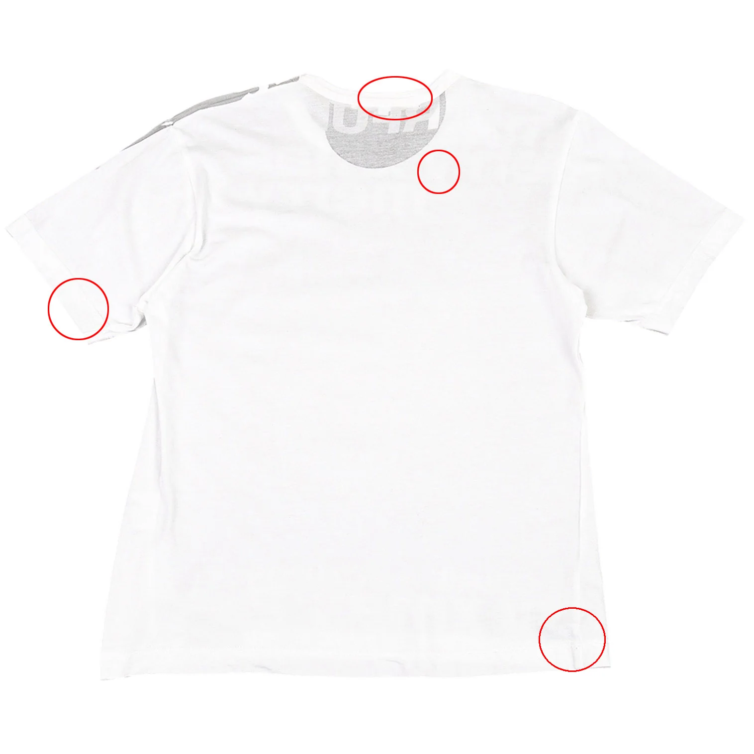 襟ぐりに汚れ、前後袖・背中にシミ、後ろ裾にステッチのほつれがあります(画像参照)。その他目立ったシミ、汚れ、ほつれ等ありません。クリーニング済み