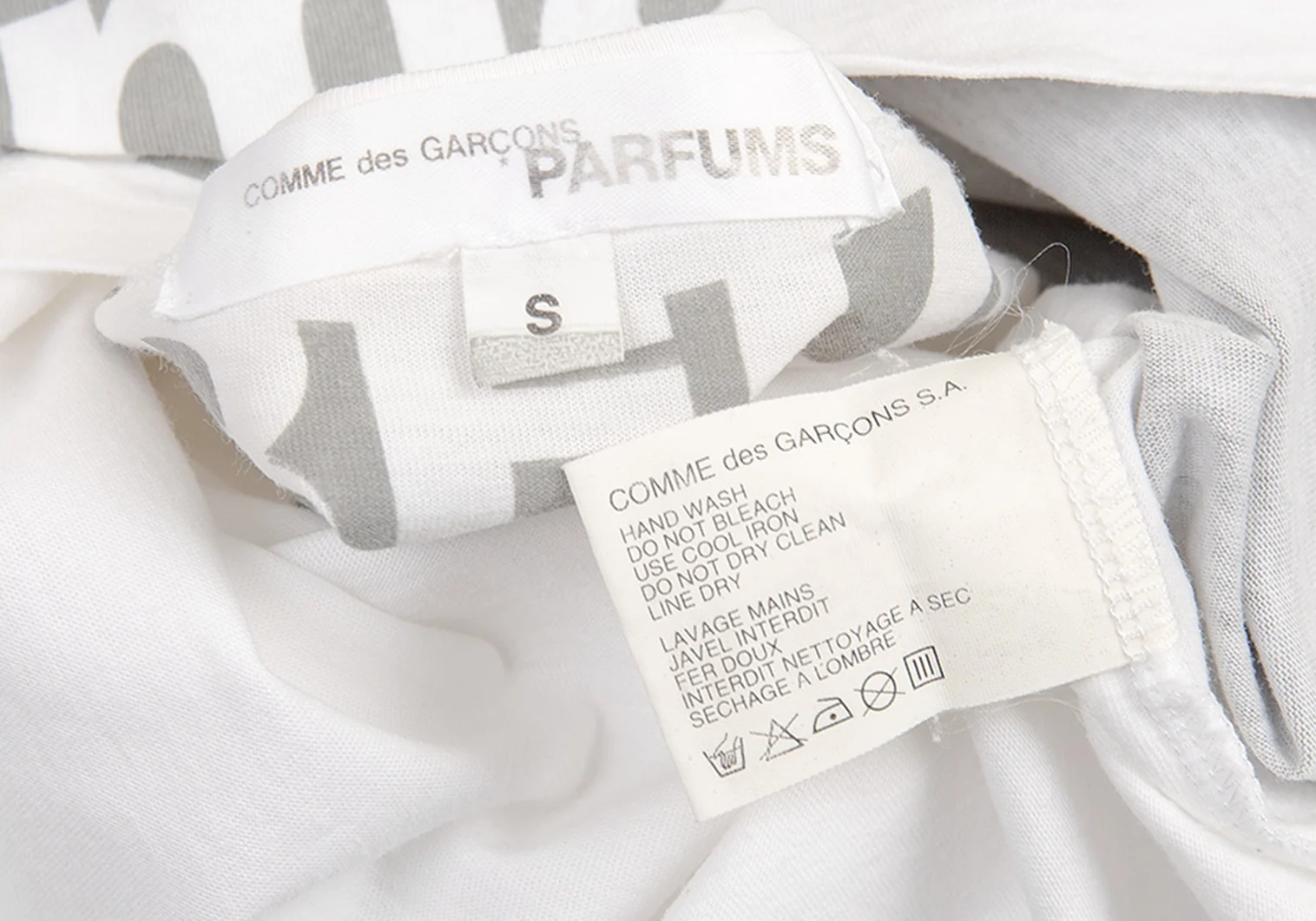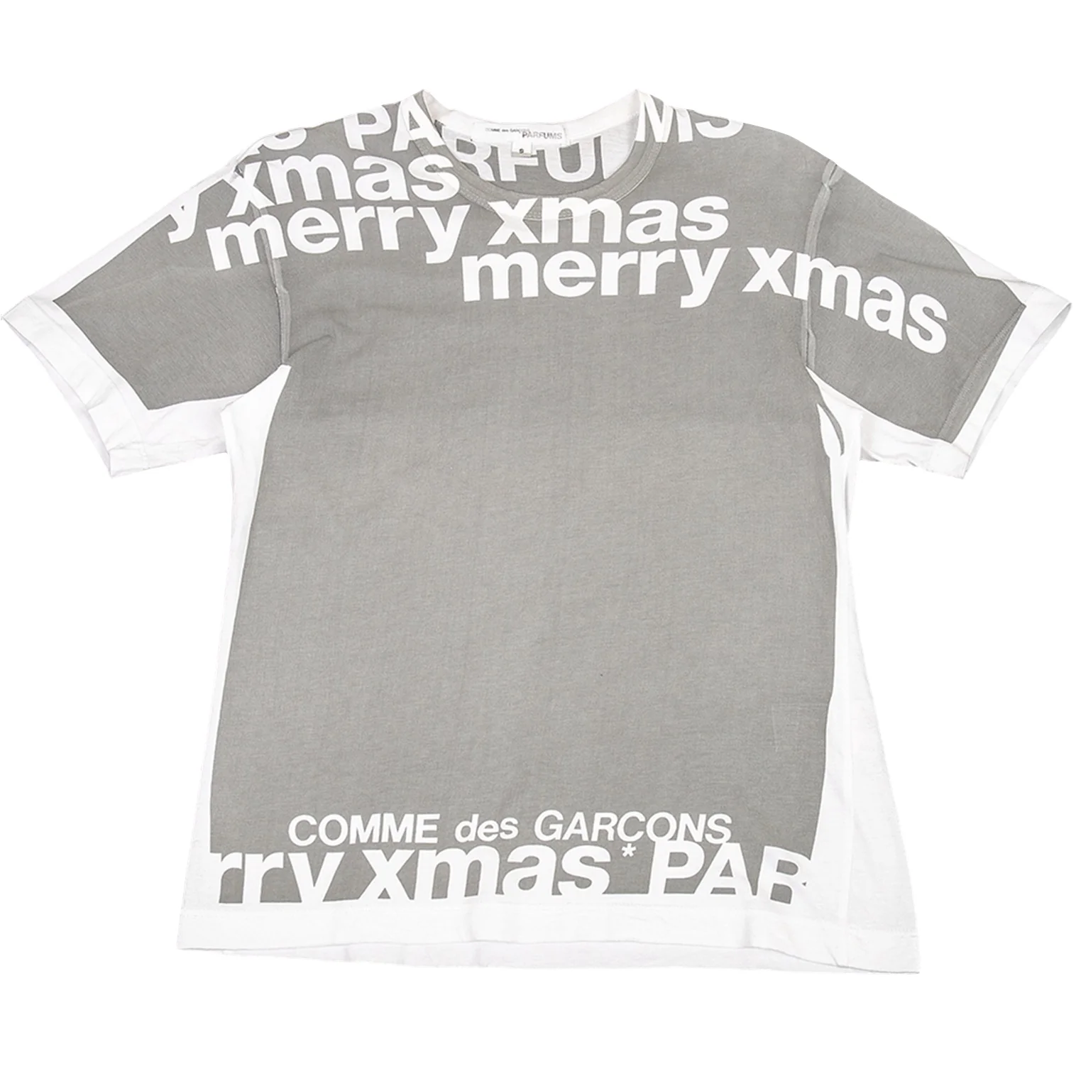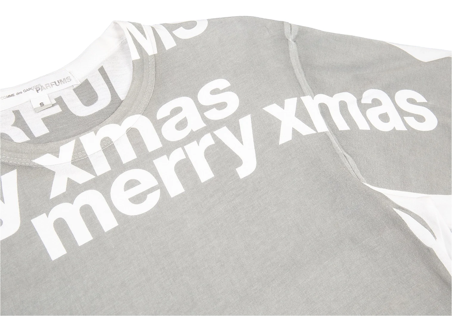 コムデギャルソン パルファムCOMME des GARCONS PARFUM 製品プリントクリスマスTシャツ グレー白S