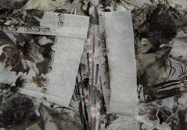 生地に透け感があります。目立ったシミ、汚れ、ほつれ等なくいい状態です。クリーニング済み