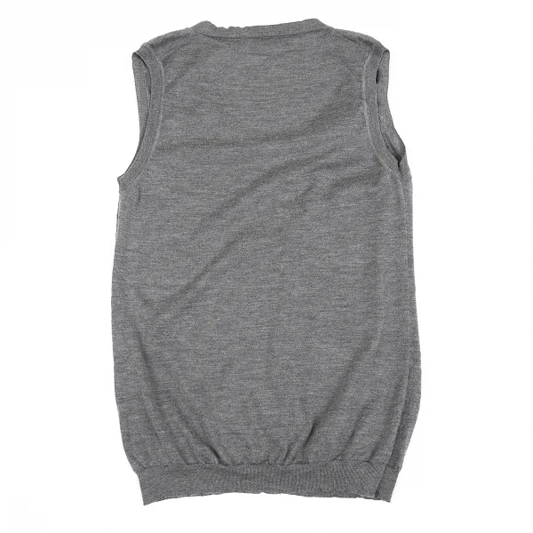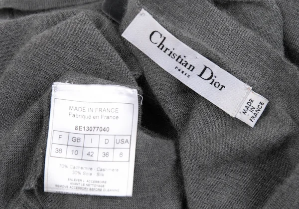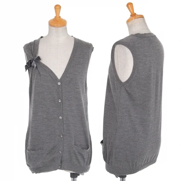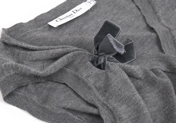 クリスチャンディオールChristian Dior カシミアシルクリボンデザインノースリーブニット 杢グレー42