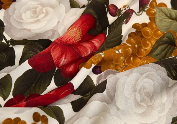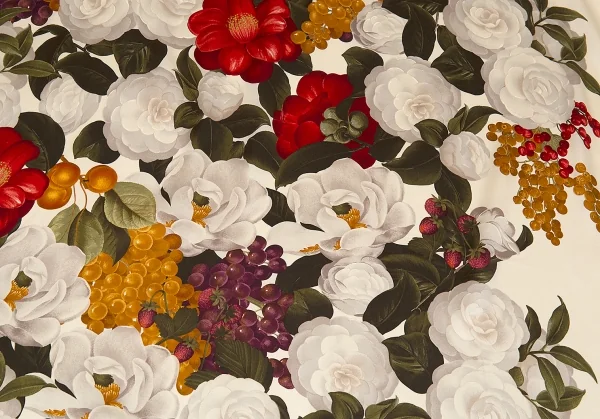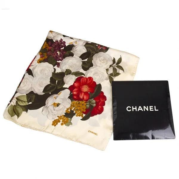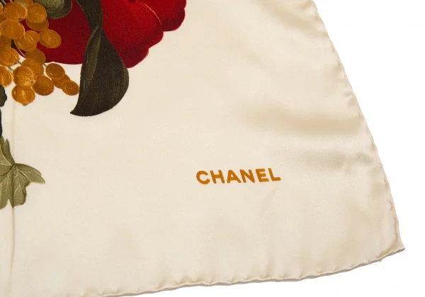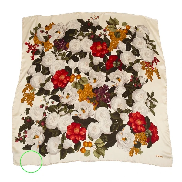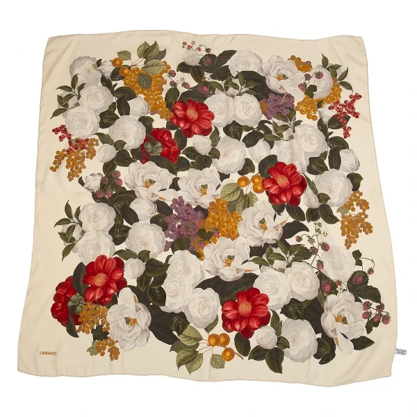 シャネルCHANEL シルクボタニカル柄スカーフ ベージュ赤緑