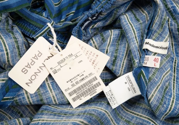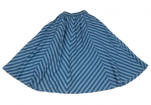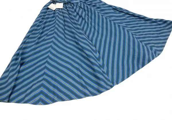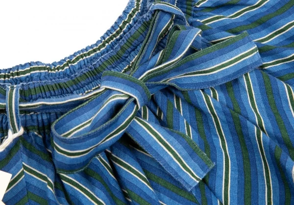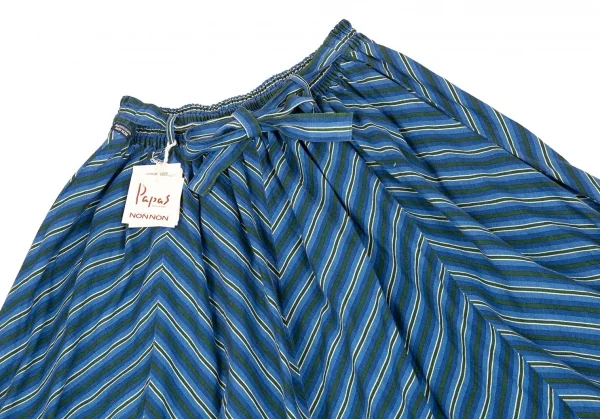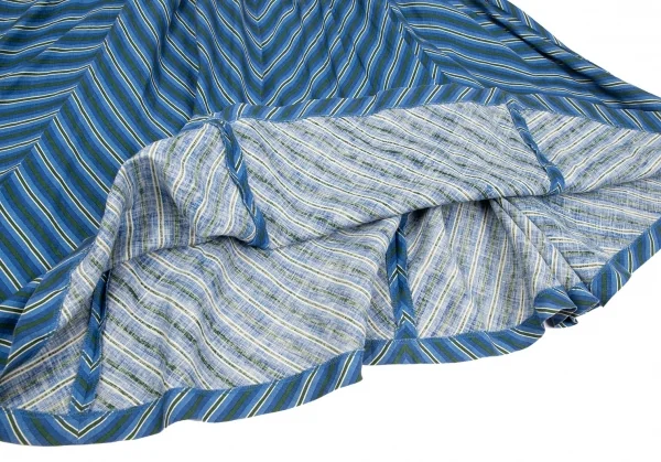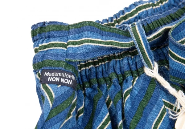 新品!マドモアゼルノンノンMademoiselle NON NON リネンバイアスストライプフレアスカート 青緑L