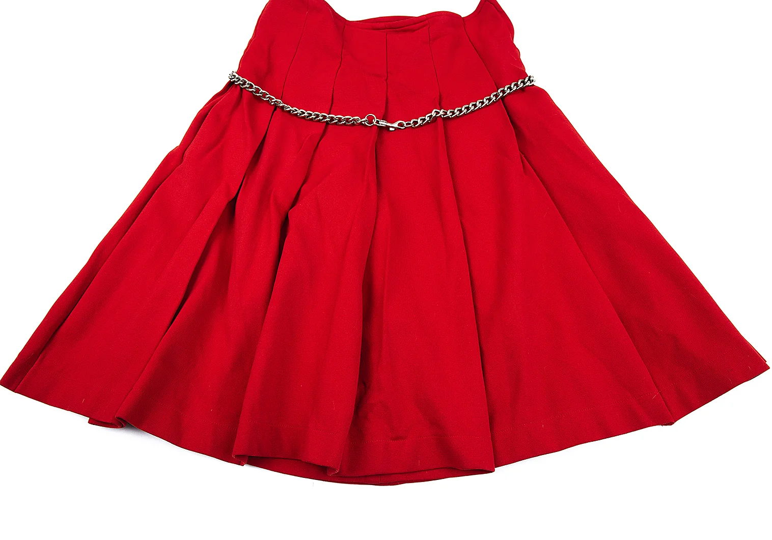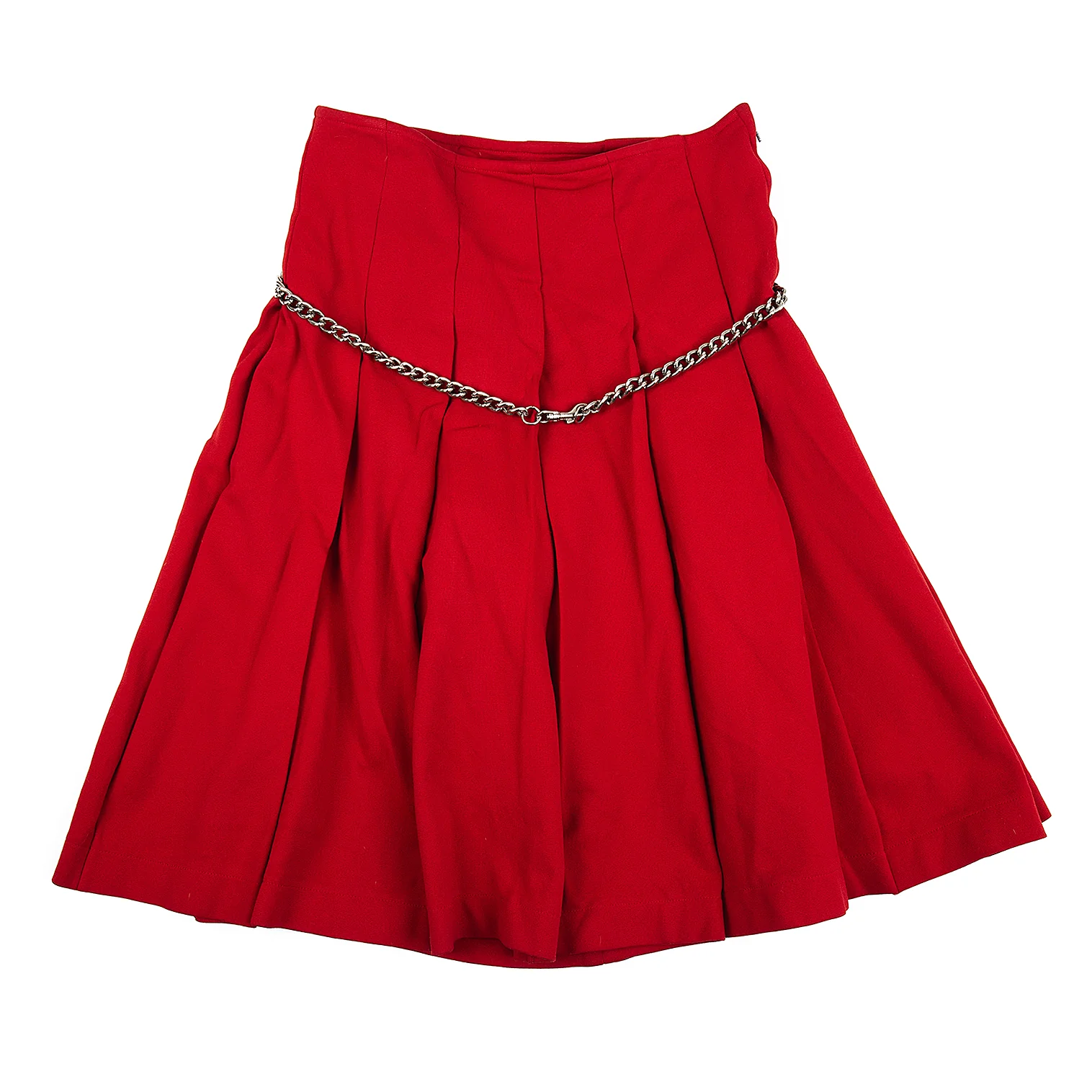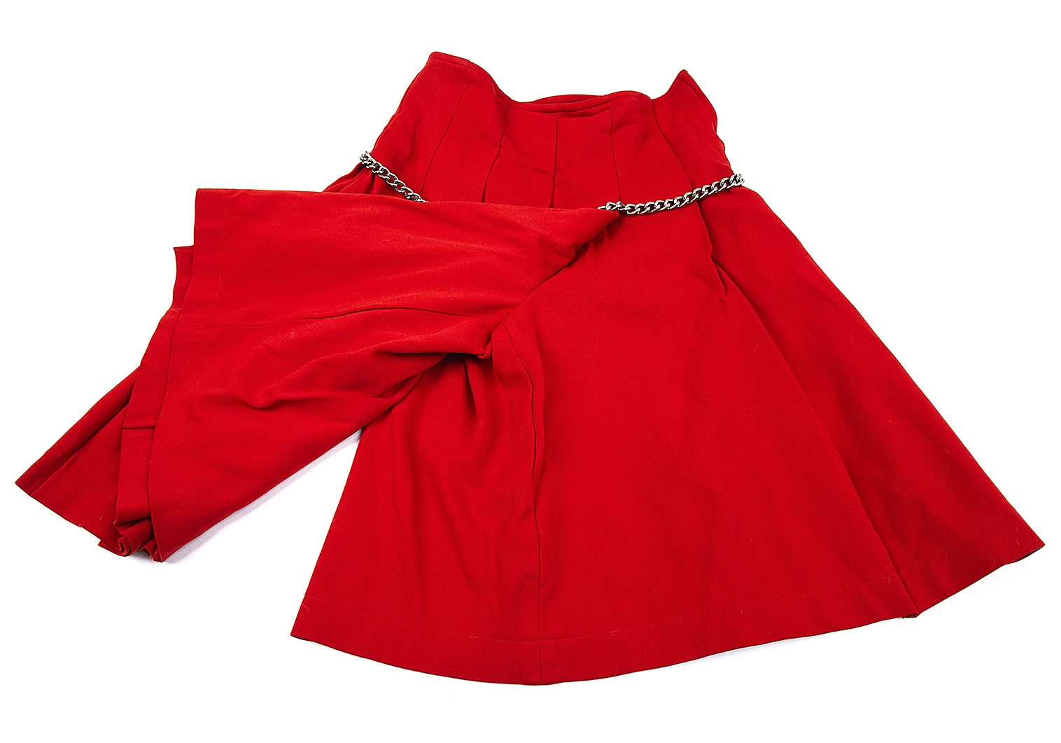 コムコム コムデギャルソンCOMME des GARCONS エステル製品染めバックチェーン装飾プリーツキュロットパンツ 赤SS