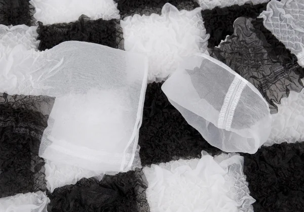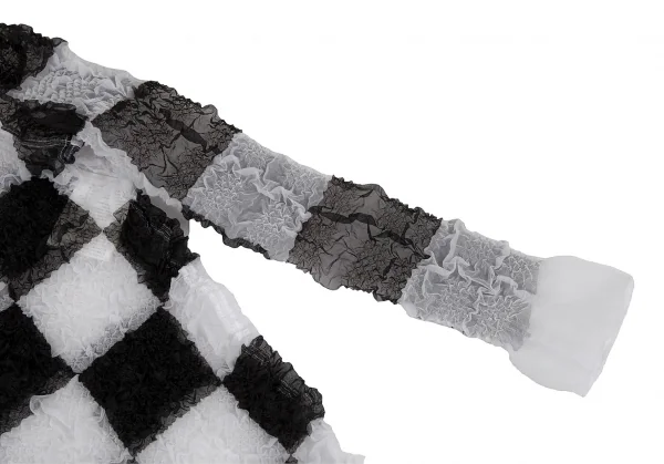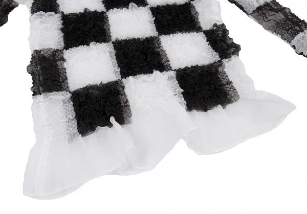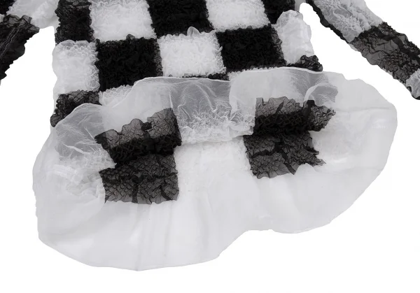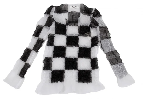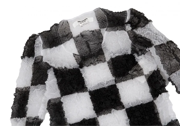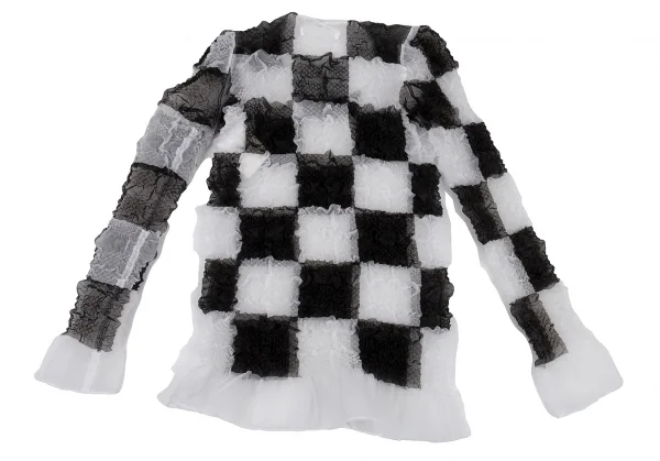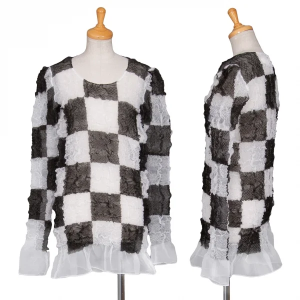 ジュンヤワタナベ コムデギャルソンJUNYA WATANABE COMME des GARCONS エステルブロックチェックギャザー加工トップス 白黒S