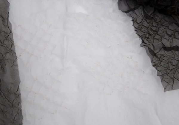 2010S/Sコレクション着用モデルです。生地に透け感があります。全体にシワ加工のノリのような跡がありますが加工のためと思われます。目立ったシミ、汚れ、ほつれ等なくいい状態です。クリーニング済み