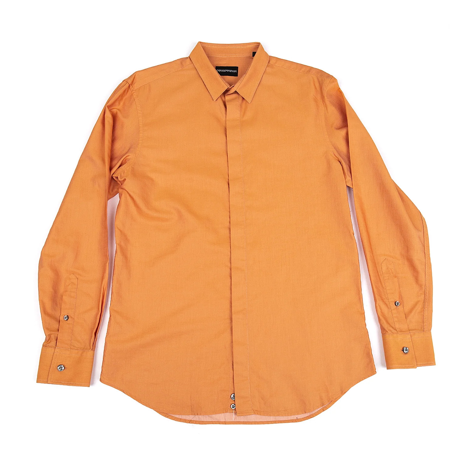 エンポリオアルマーニEMPORIO ARMANI 長袖コットンドレスシャツ オレンジ40