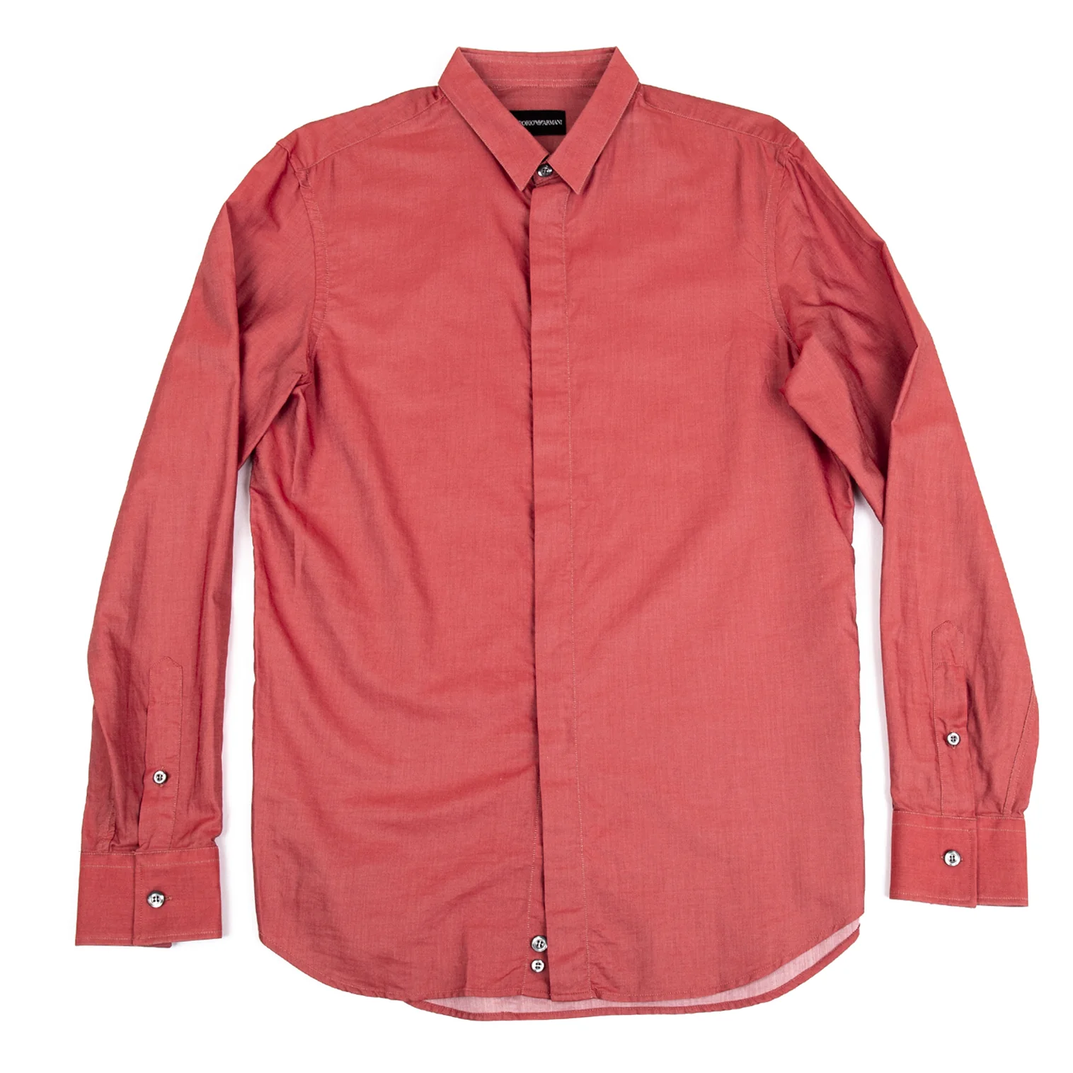 エンポリオアルマーニEMPORIO ARMANI 長袖コットンドレスシャツ エンジ40