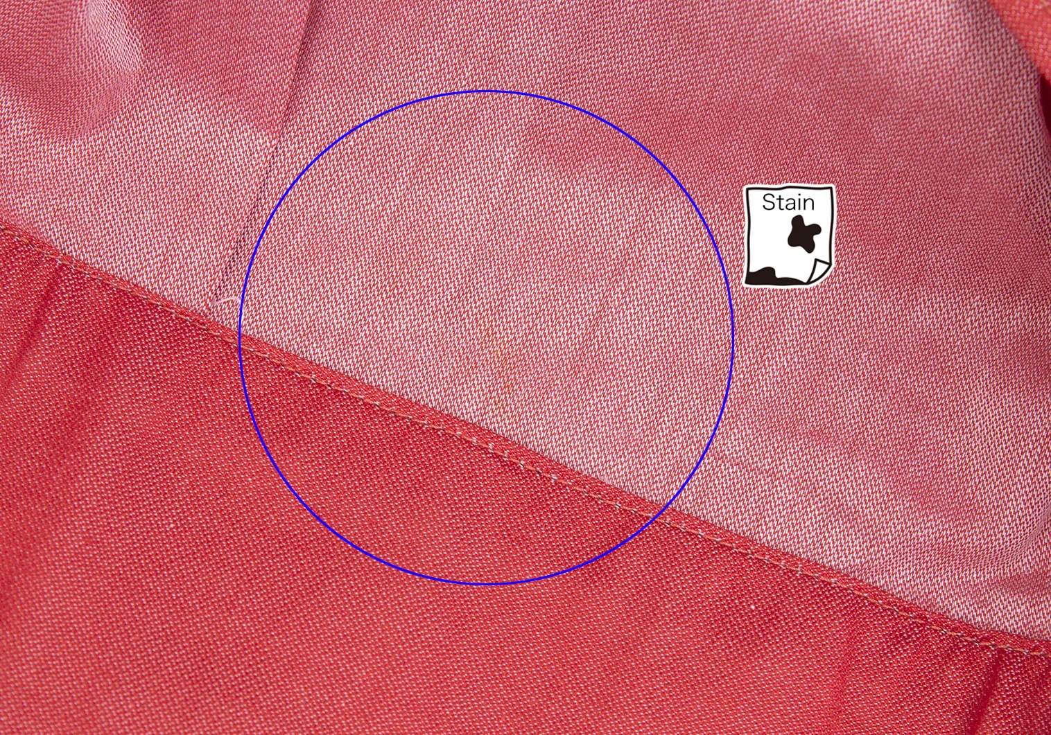左袖裏に薄シミがあります(写真参照)。その他に目立ったシミ、汚れ、ほつれ等なくいい状態です。クリーニング済み