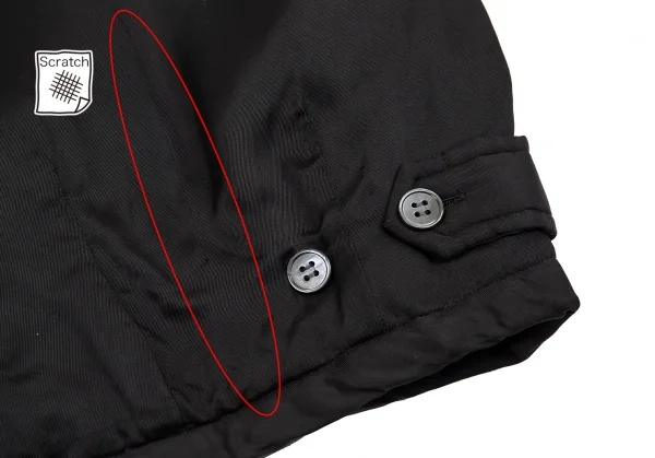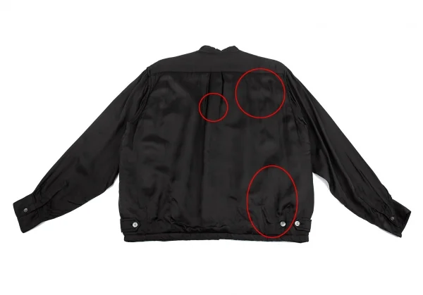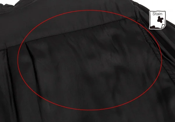 細かい糸引き、後ろに薄シミがあります(写真参照)。その他に目立ったシミ、汚れ、ほつれ等はありません。クリーニング済み