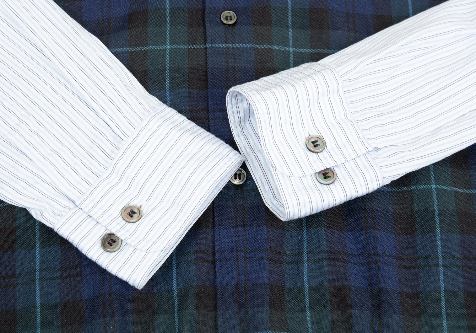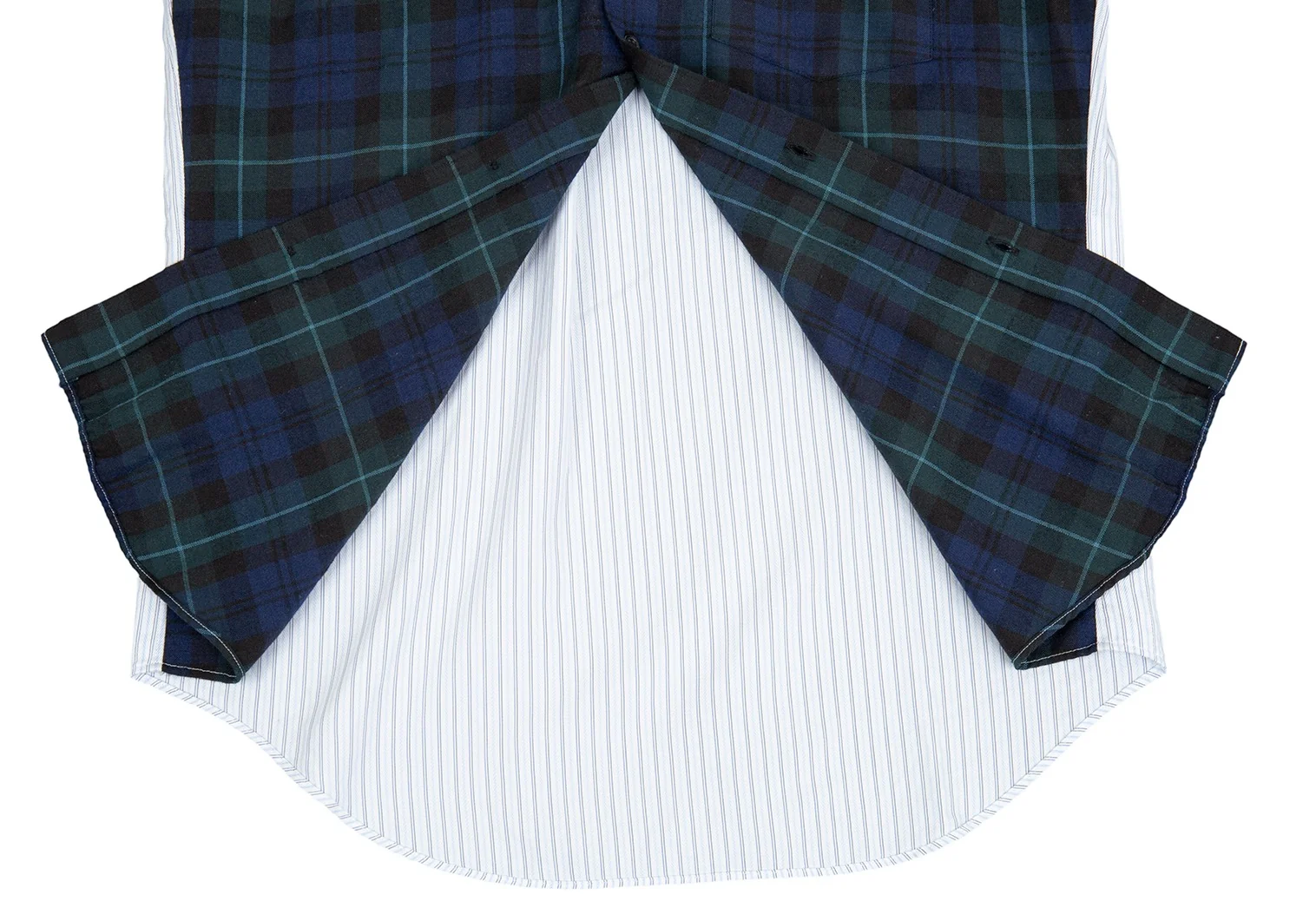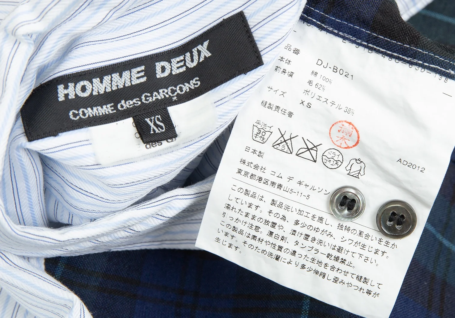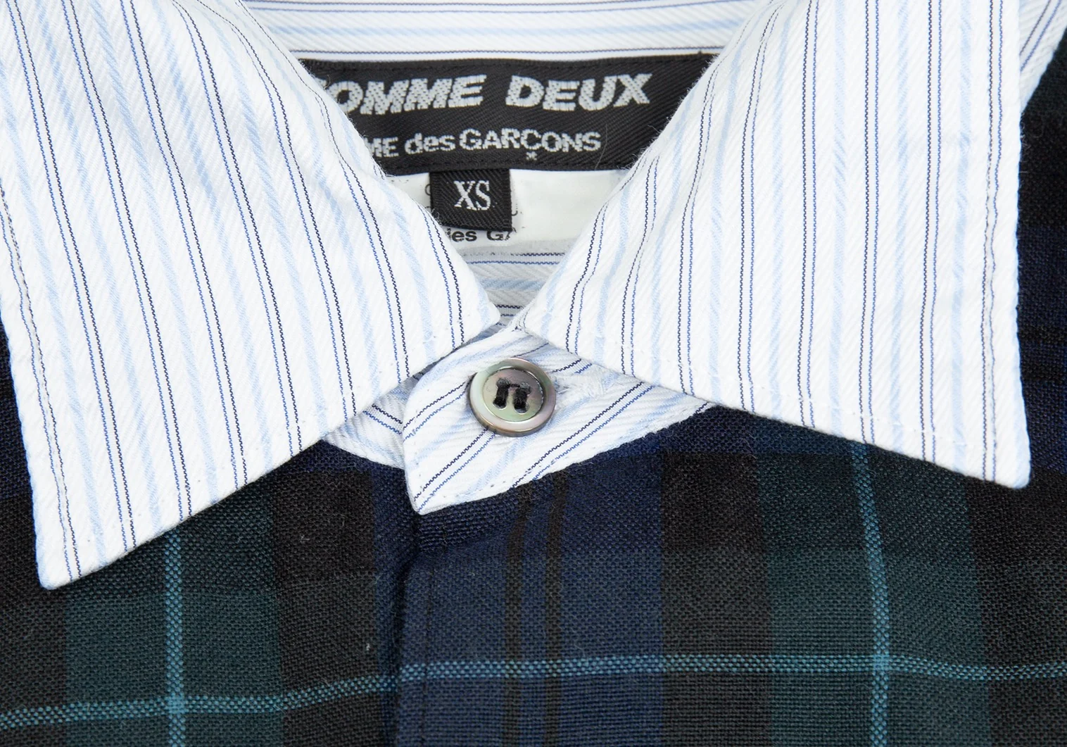 コムデギャルソン オムドゥCOMME des GARCONS HOMME DEUX フロントチェック切替ストライプシャツ 白水色紺XS