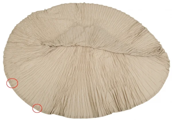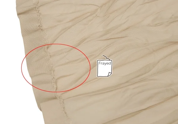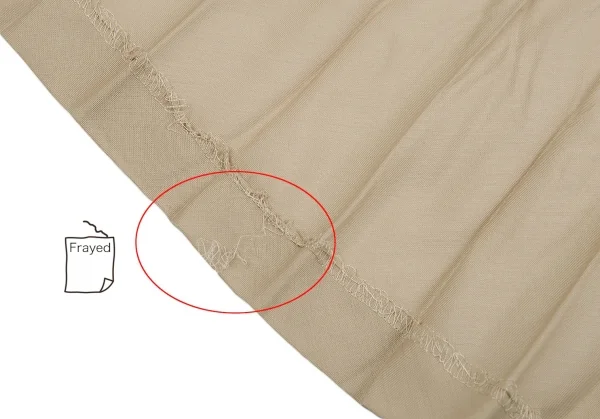 透け感のある生地です。裾裏ロックにほつれが数カ所あります(画像参照)。その他目立ったシミ、汚れ、ほつれ等なくいい状態です。クリーニング済み