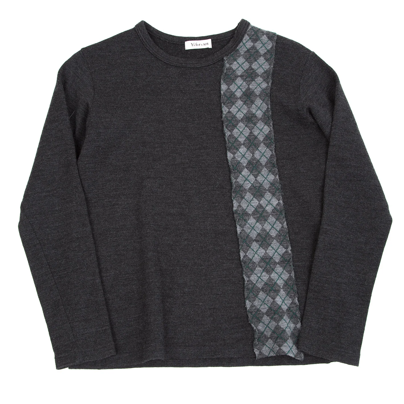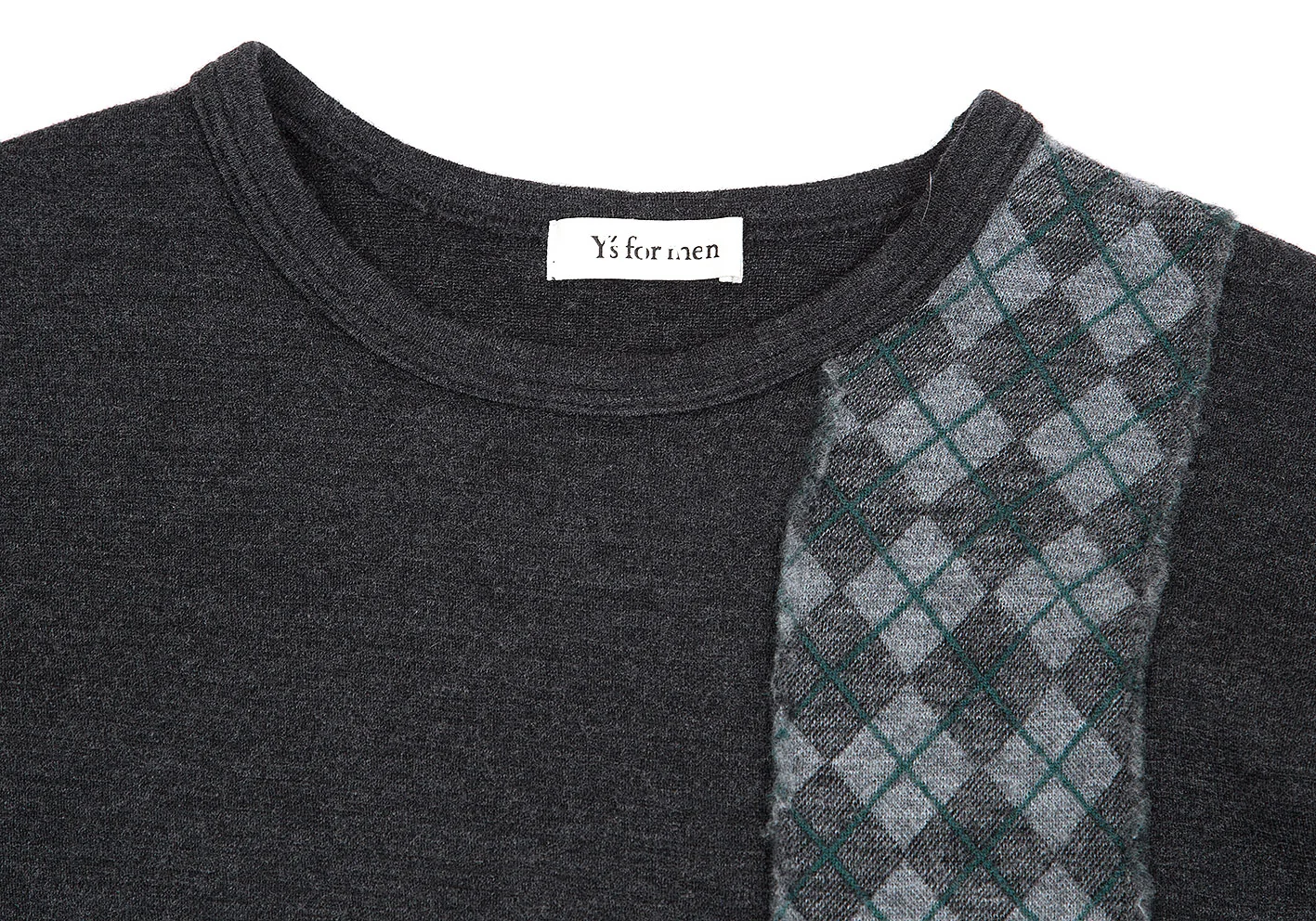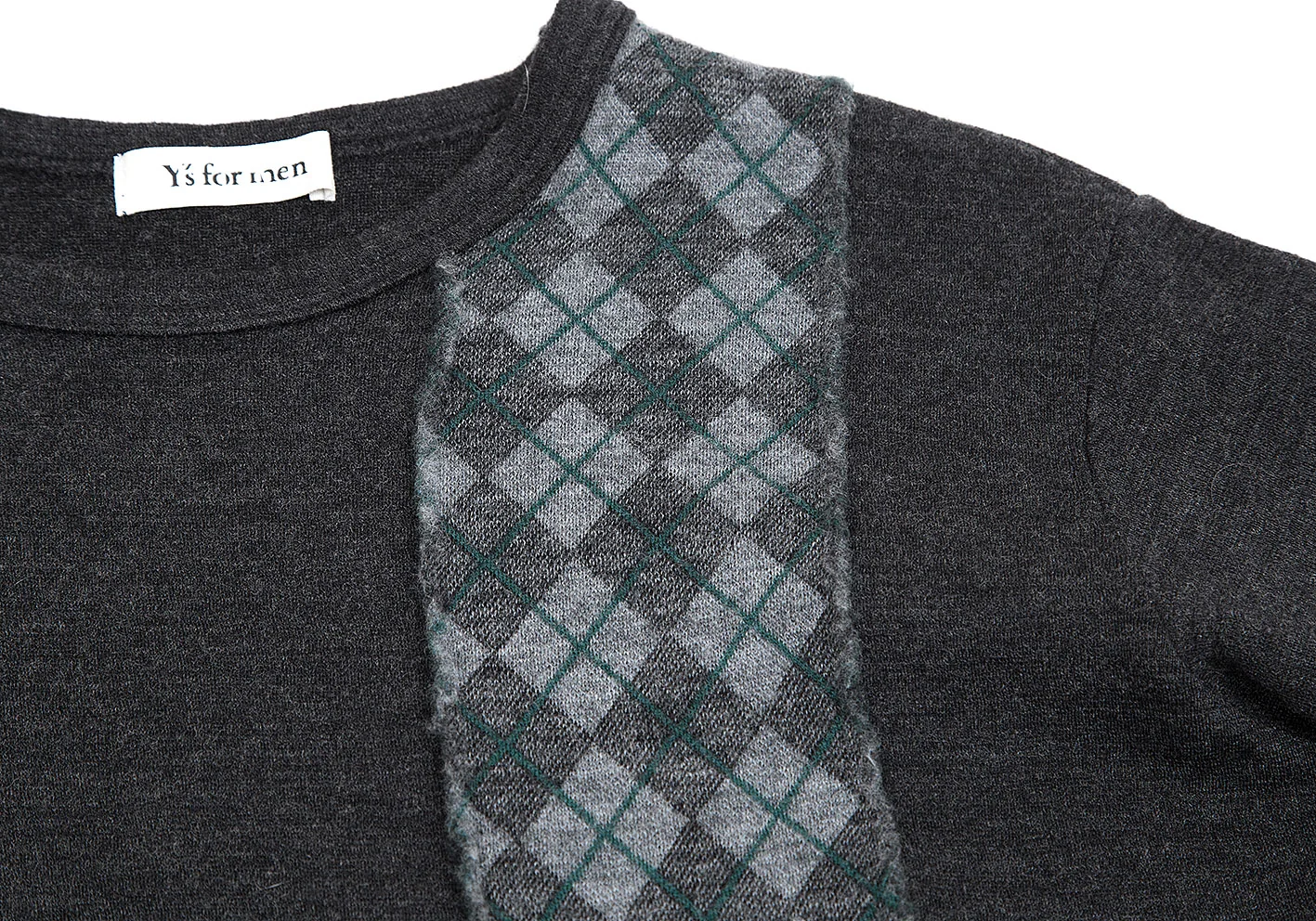 ワイズフォーメンY's for men SHIRTS ウールダイヤチェック切替デザインニットカットソー チャコール他M位