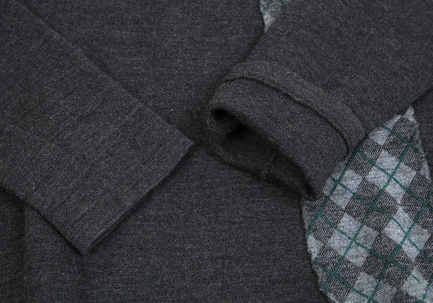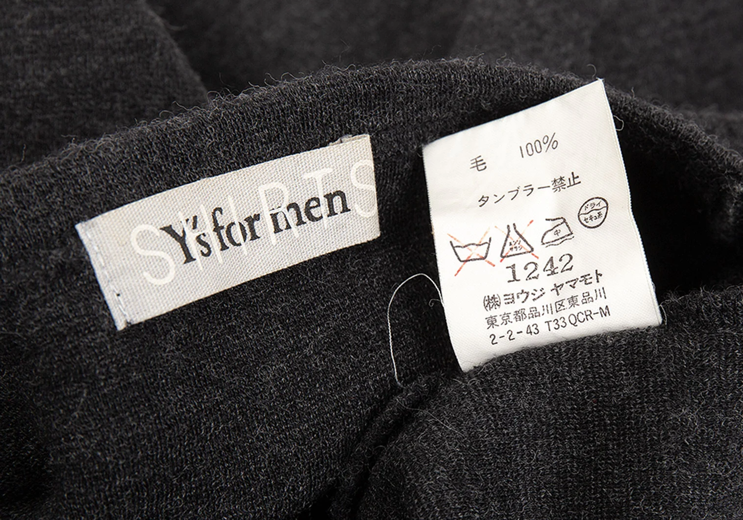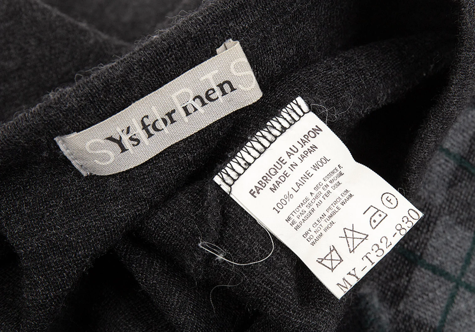 ワイズフォーメンY's for men SHIRTS ウールダイヤチェック切替デザインニットカットソー チャコール他M位