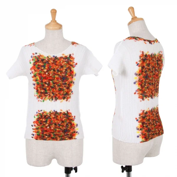イッセイミヤケISSEY MIYAKE(T.) ボックスプリーツジェリービーンズプリントカットソー 白マルチM