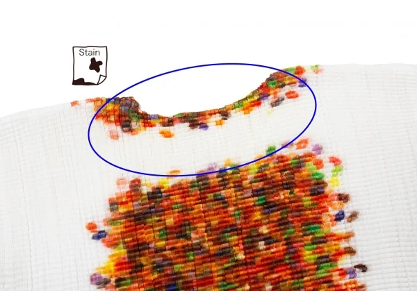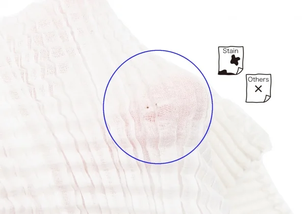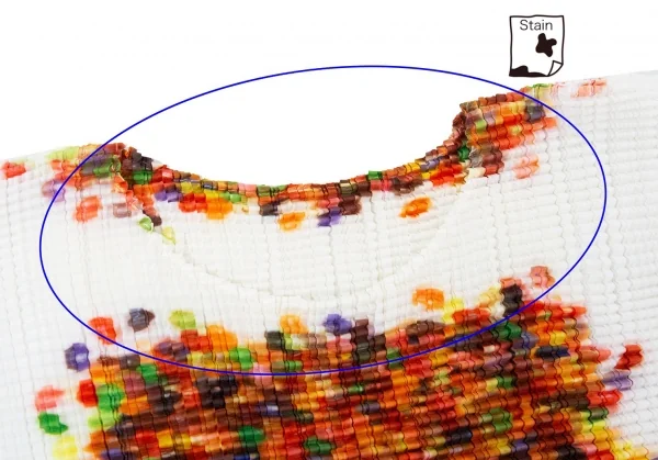 前後首回り・脇下に黄ばみ、左袖にシミ・ダメージがあります(画像参照)。その他目立ったシミ、汚れ、ほつれ等ありません。クリーニング済み