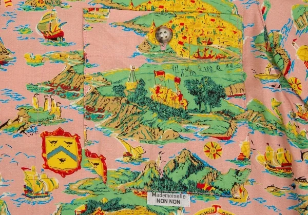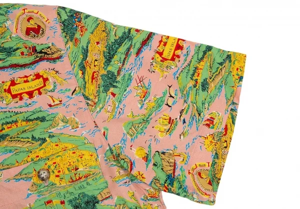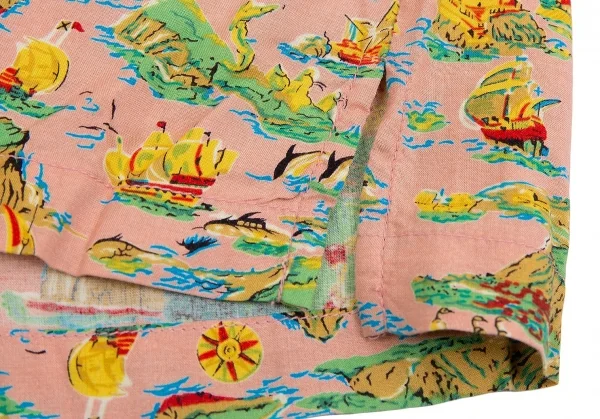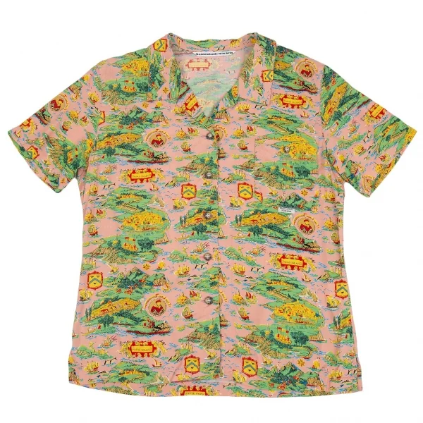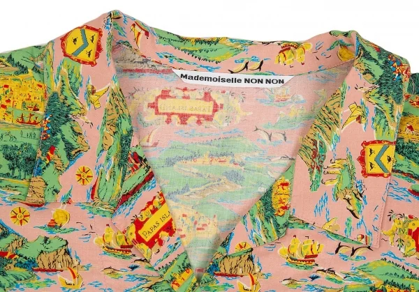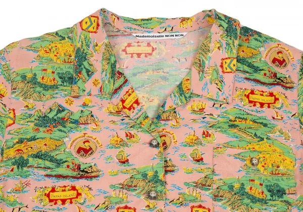 マドモアゼルノンノンMademoiselle NON NONレーヨン半袖アロハシャツ ピンク他L