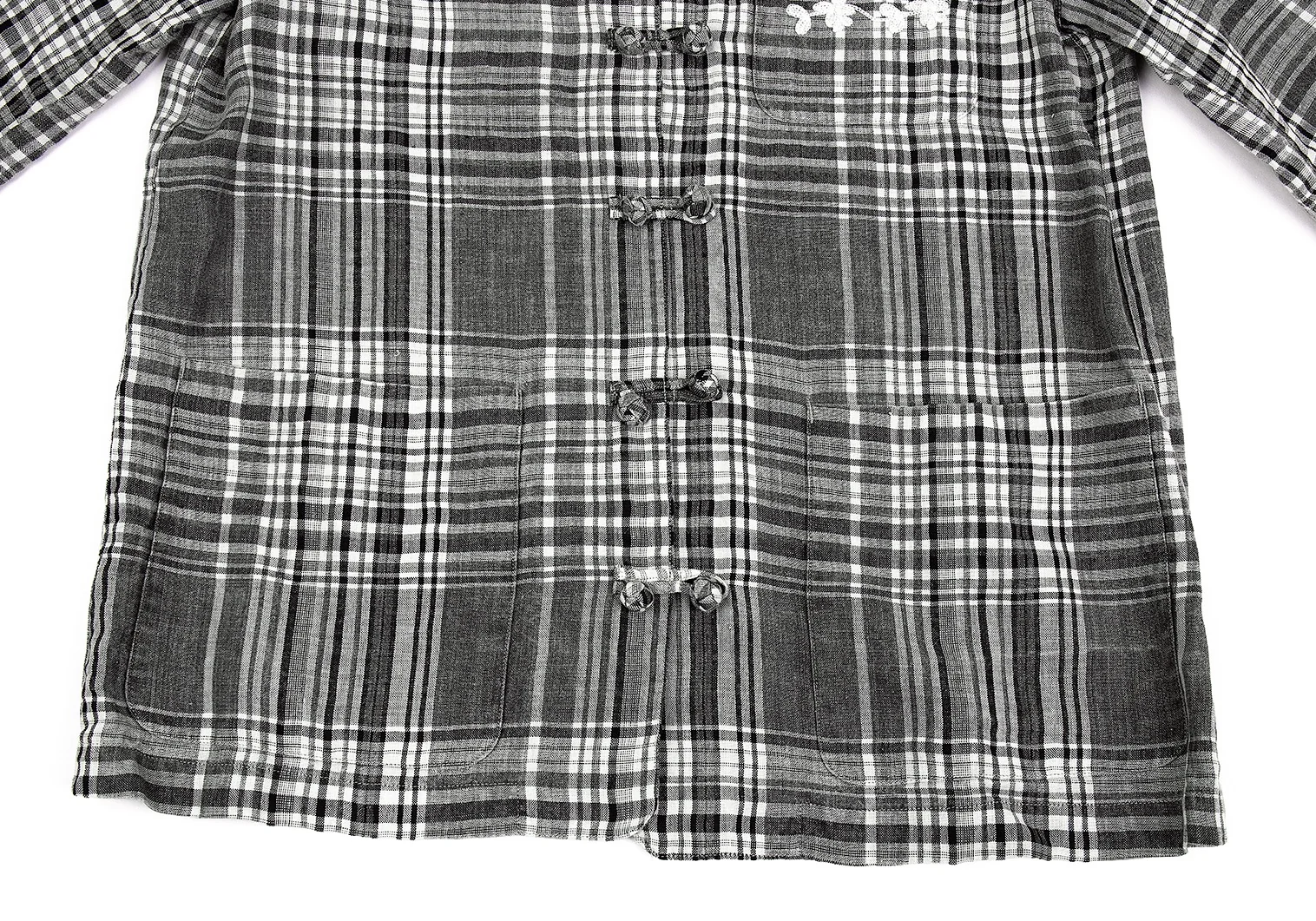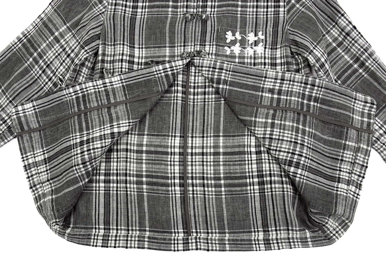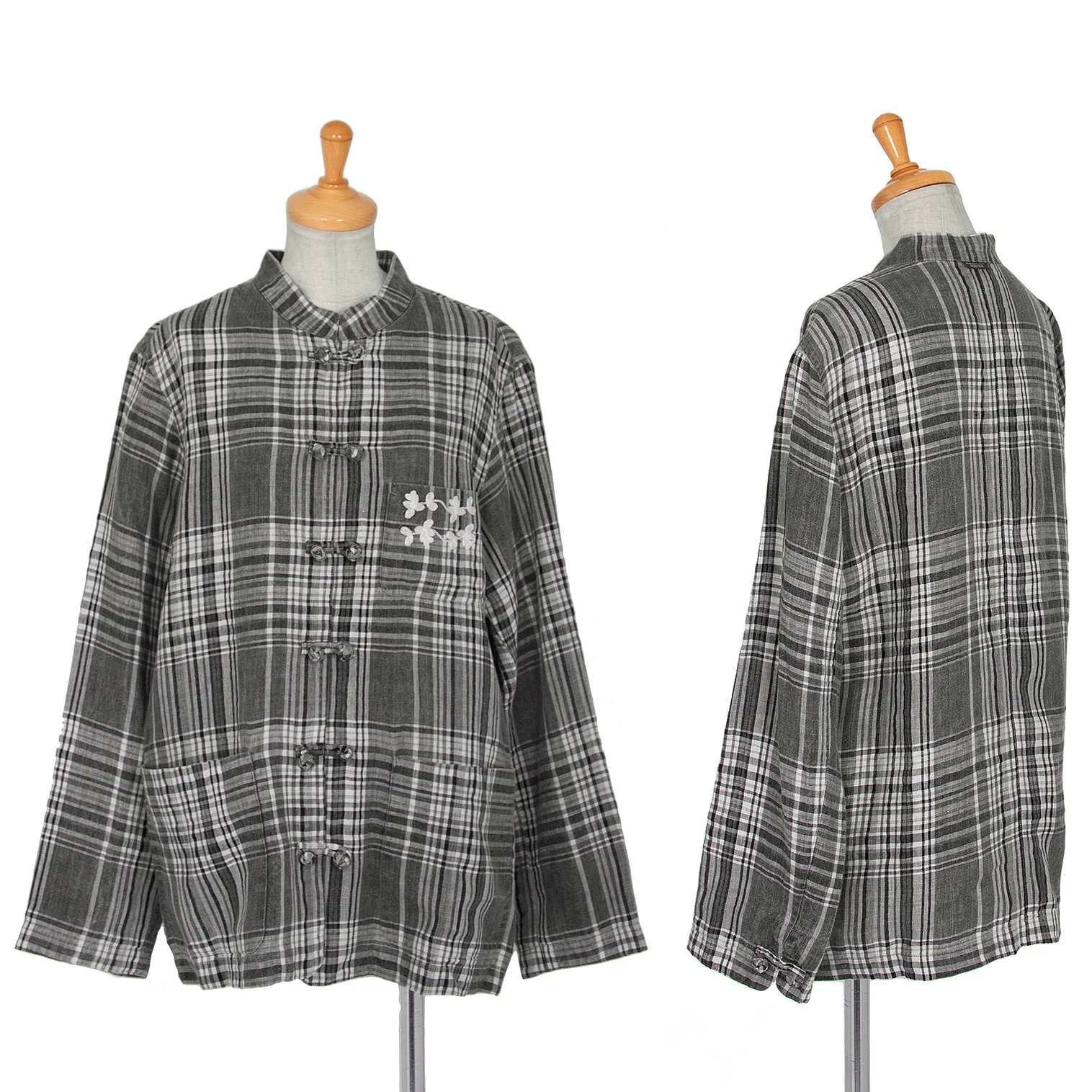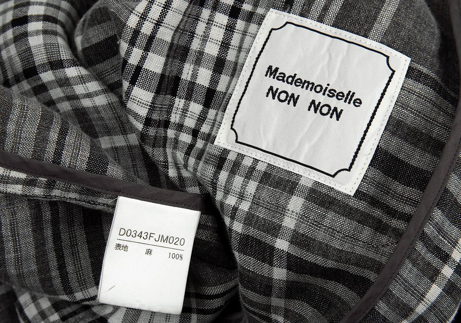 マドモアゼルノンノンMademoiselle NON NON刺繍リネンチャイナチェックジャケット グレー濃淡L位