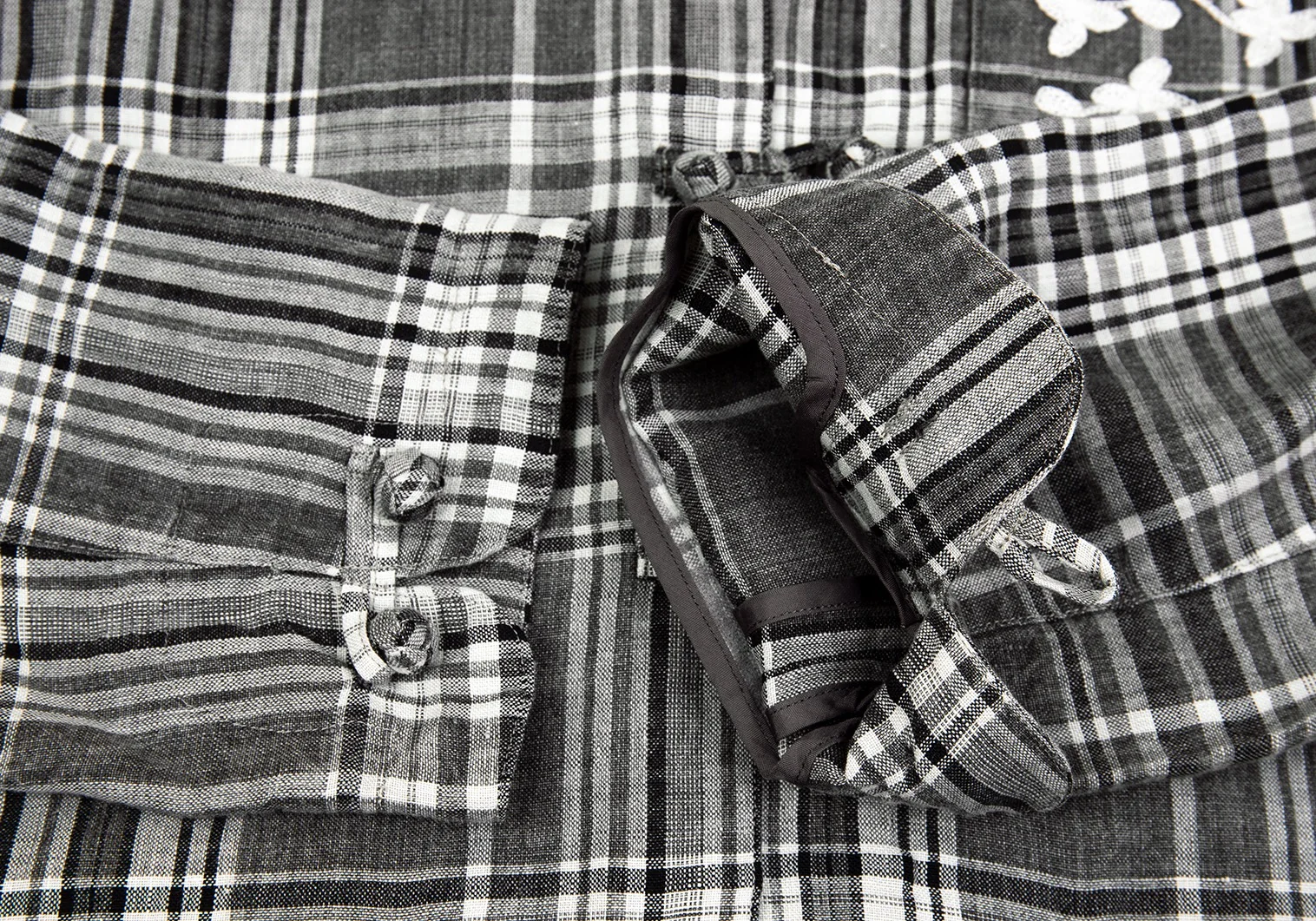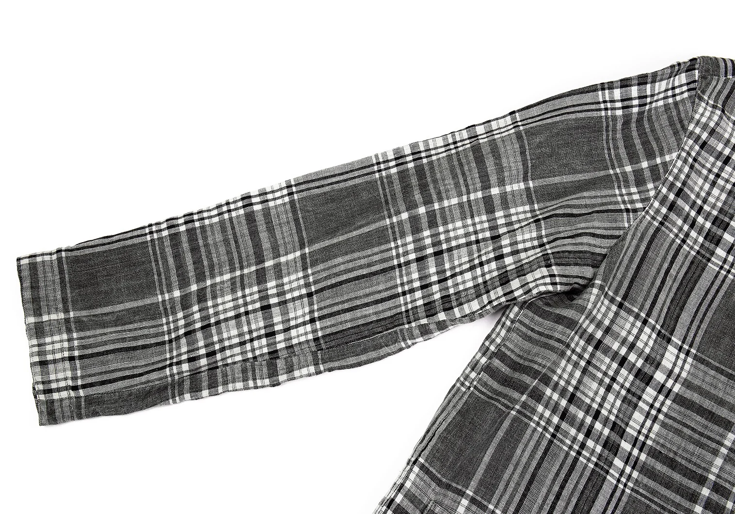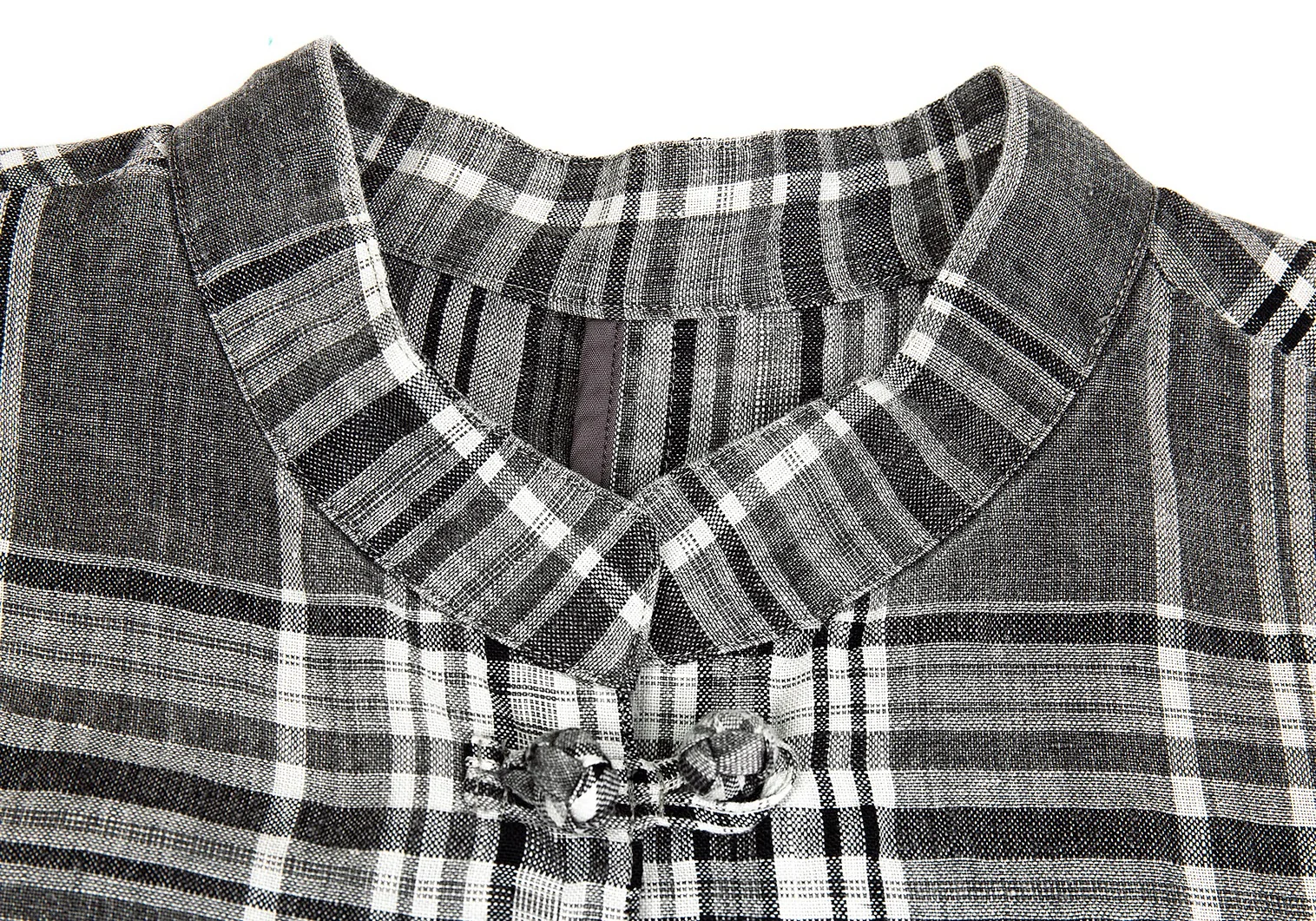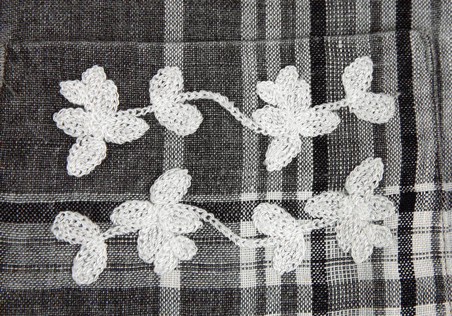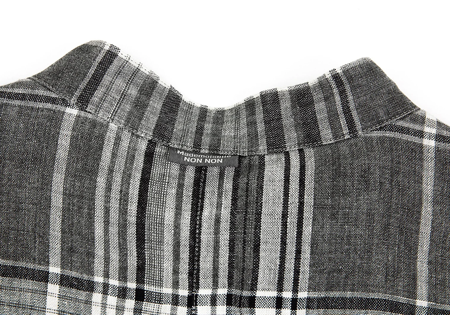 マドモアゼルノンノンMademoiselle NON NON刺繍リネンチャイナチェックジャケット グレー濃淡L位