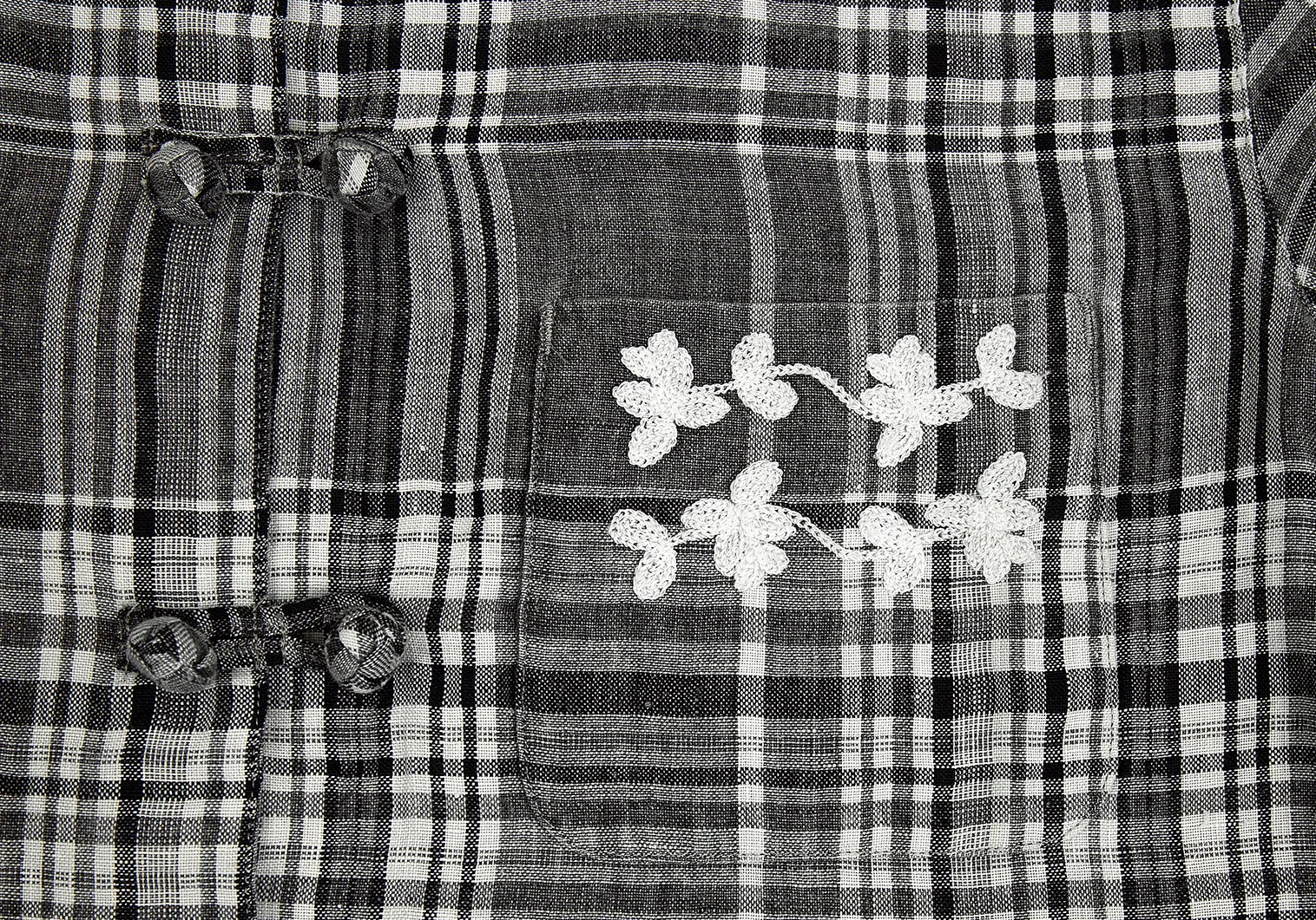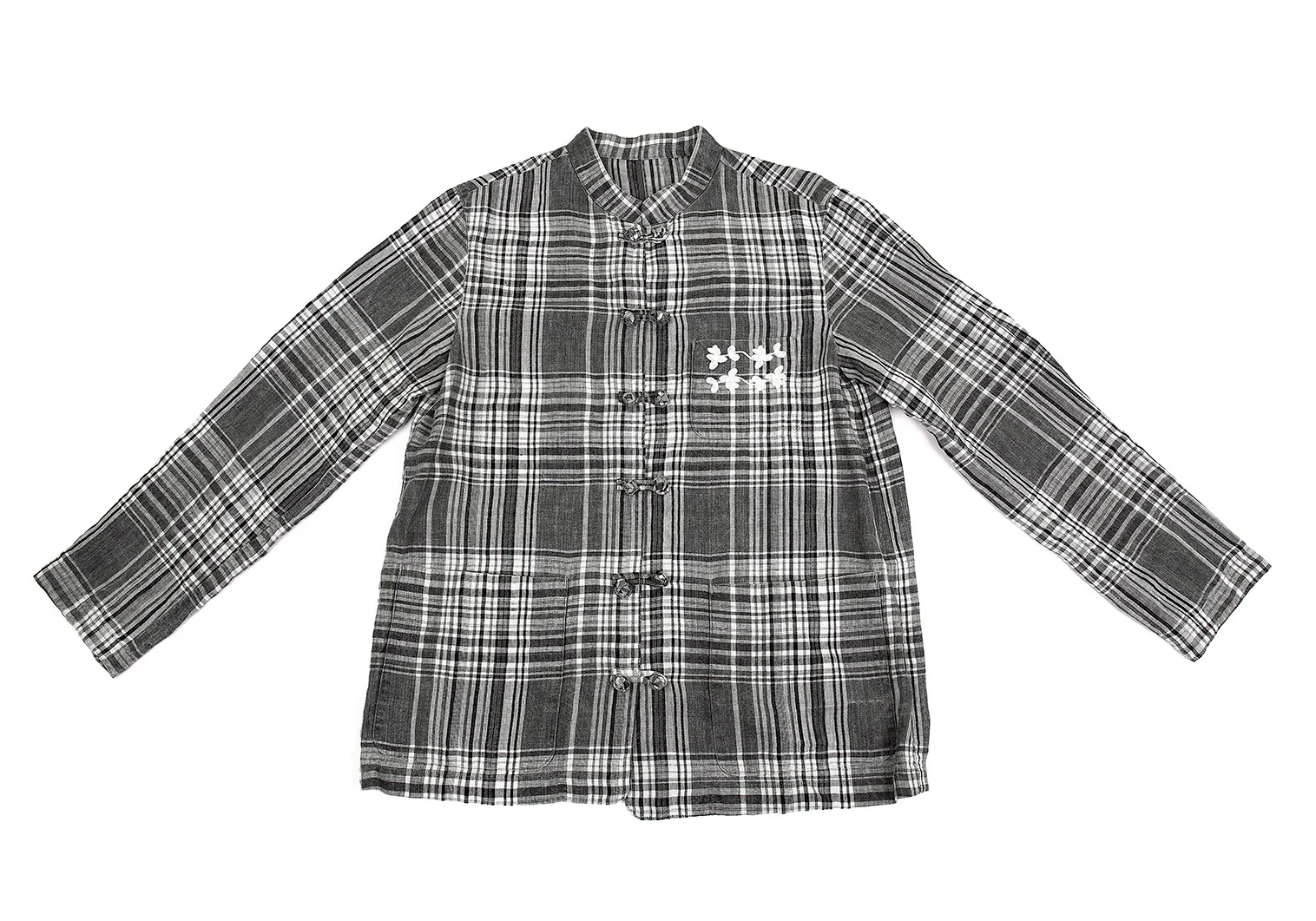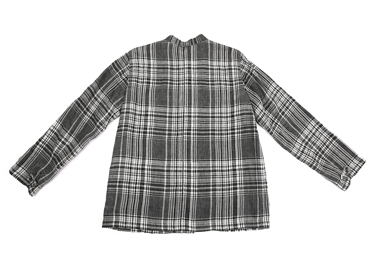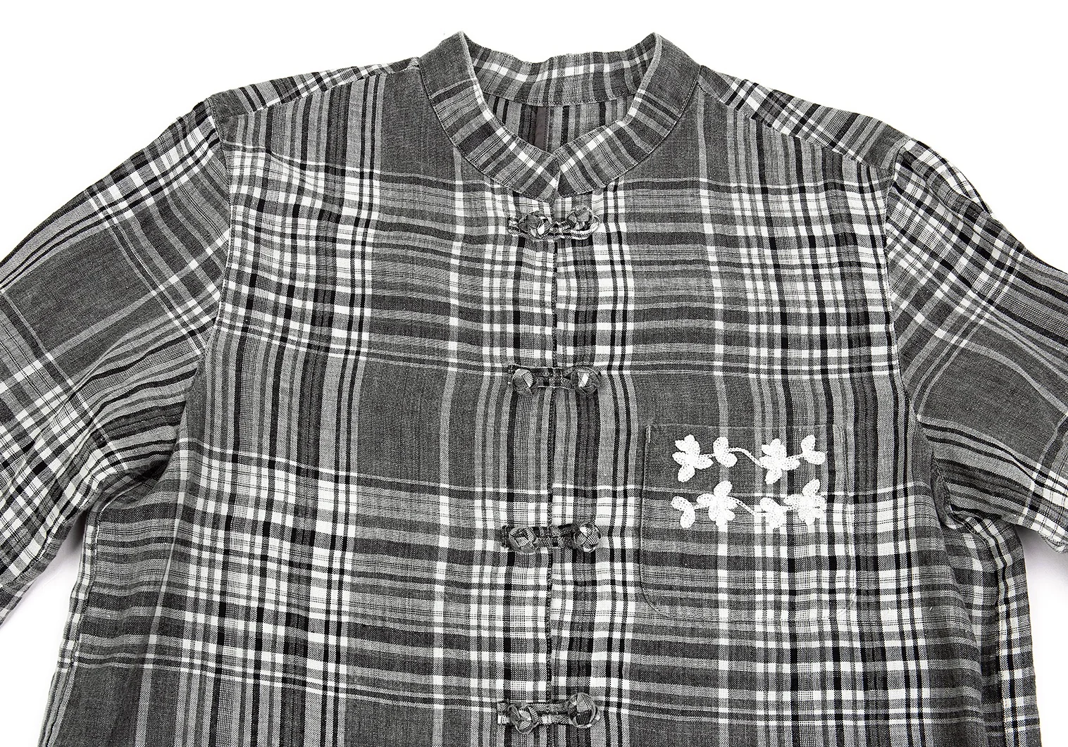 マドモアゼルノンノンMademoiselle NON NON刺繍リネンチャイナチェックジャケット グレー濃淡L位