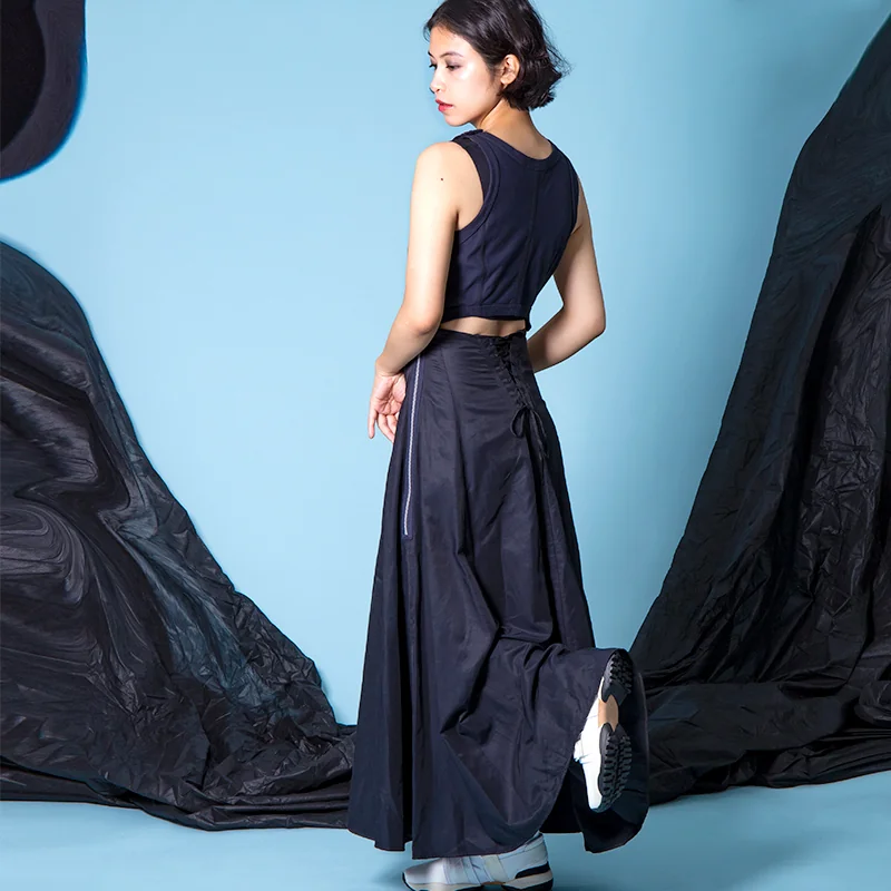 タケシコウサカバイ ワイズ ピンクレーベルTAKESHI KOSAKA by Y's Pink Label バックレース切替コットンワンピース 紺2