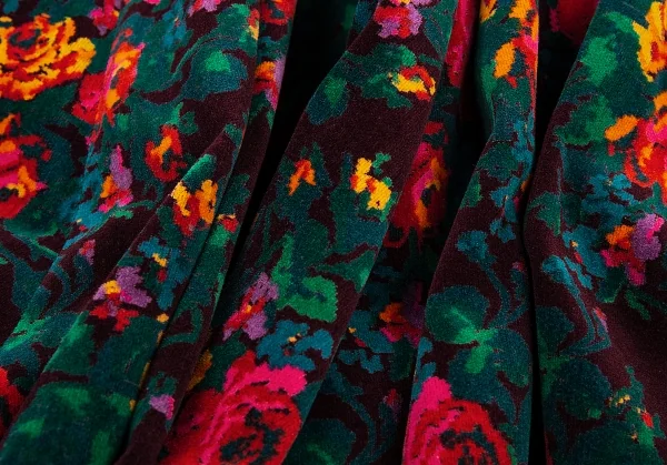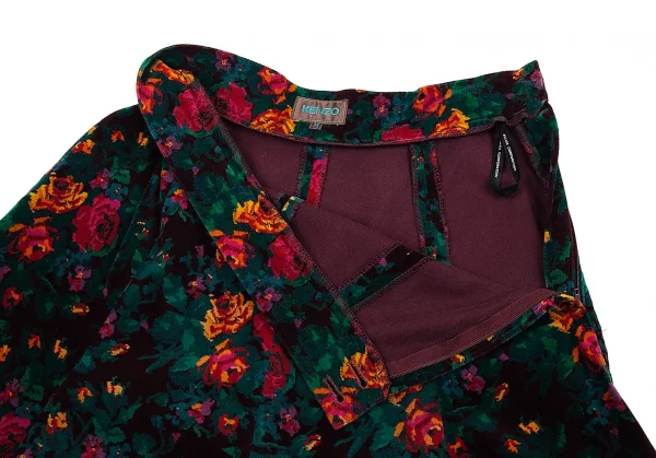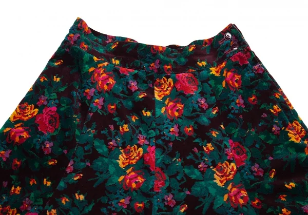 ケンゾーKENZO 花プリントベルベットフレアースカート ボルドーマルチM