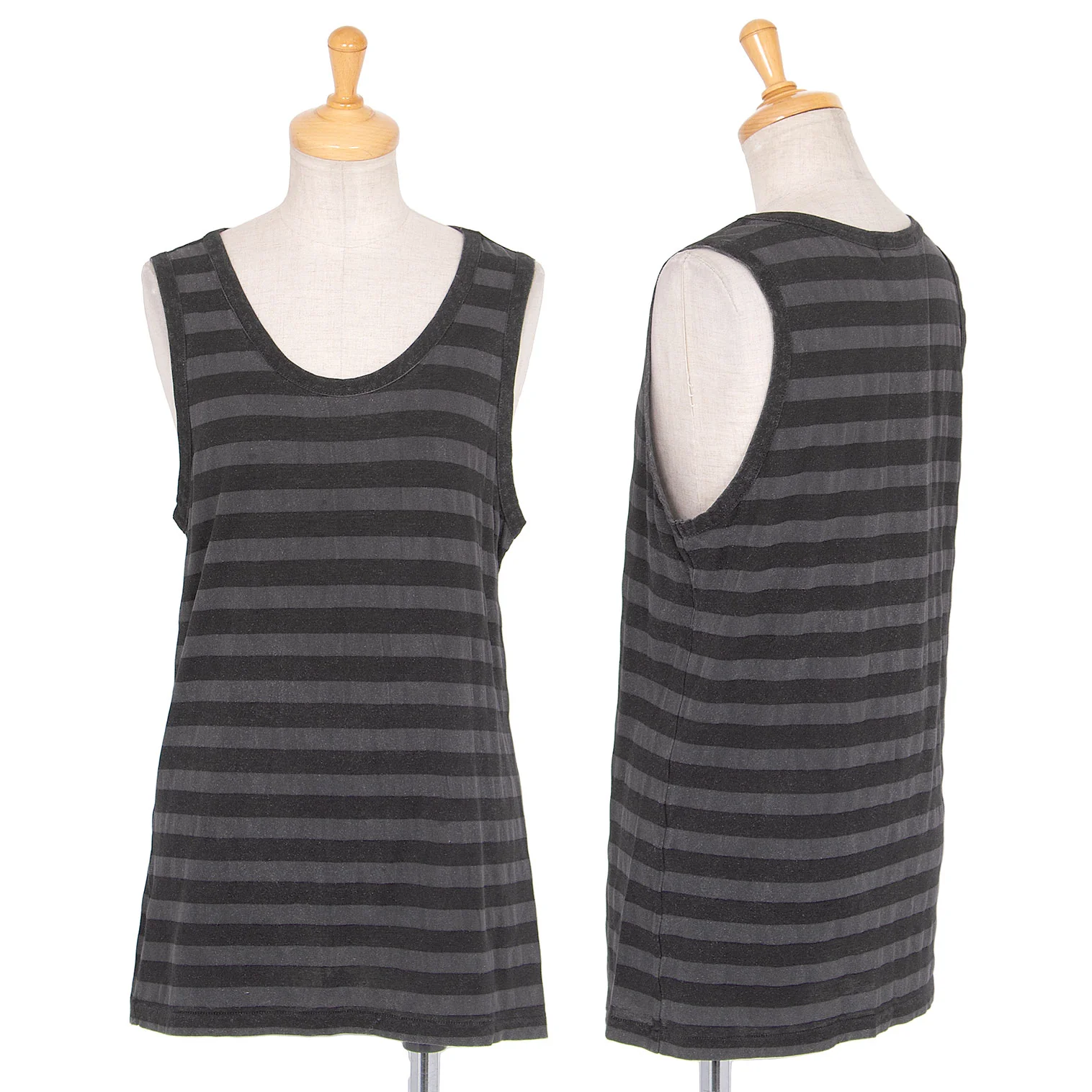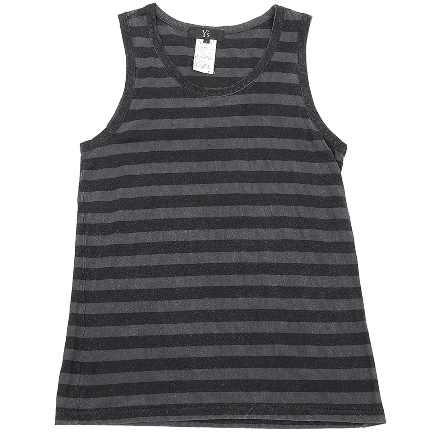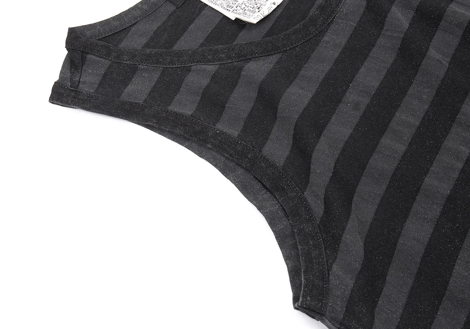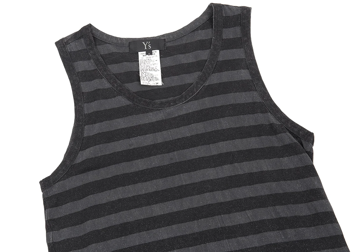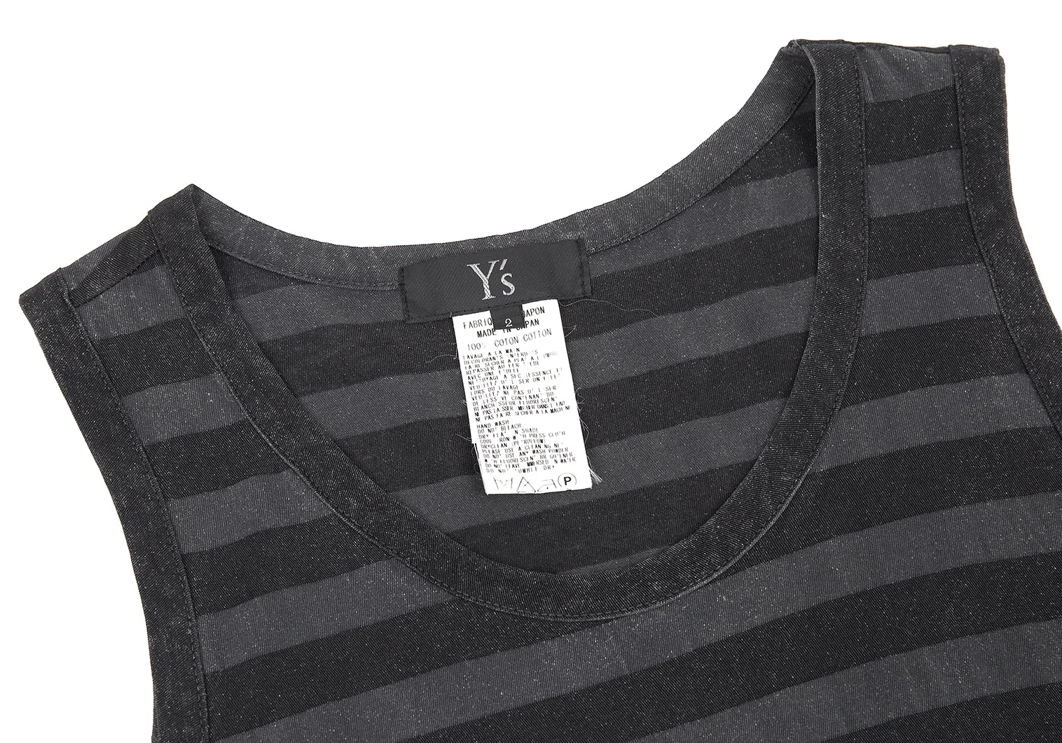 ワイズY's コットン抜染むら加工ボーダータンクトップ 黒グレー2