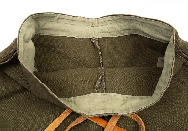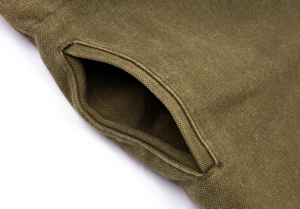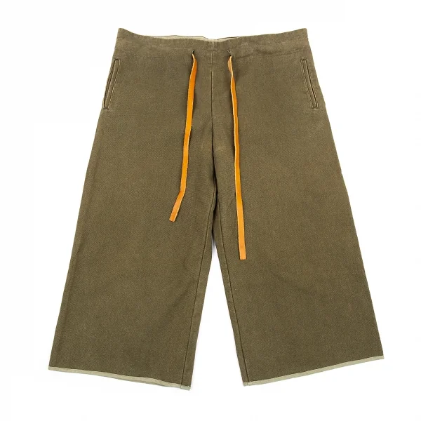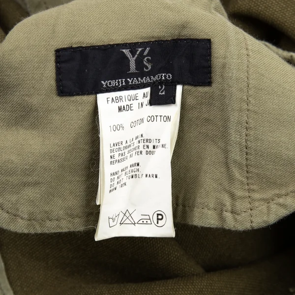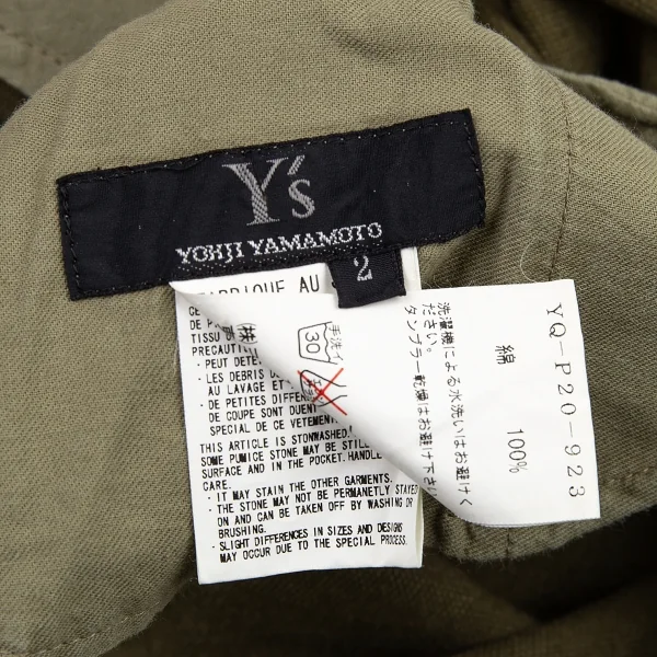 ワイズY's ストーンウォッシュウエストベルト帆布ワイドクロップドパンツ カーキ2