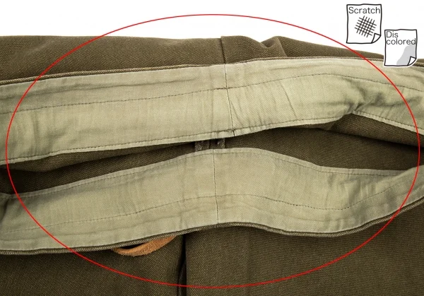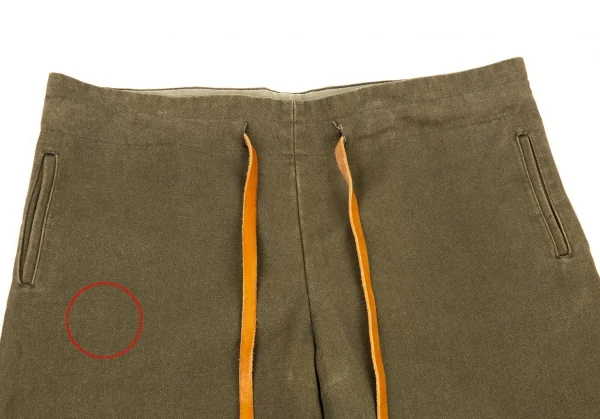 前に薄シミ、ウエスト裏に擦れ・色褪せ、裾に擦れがあります(写真参照)。その他に目立ったシミ、汚れ、ほつれ等なくいい状態です。クリーニング済み