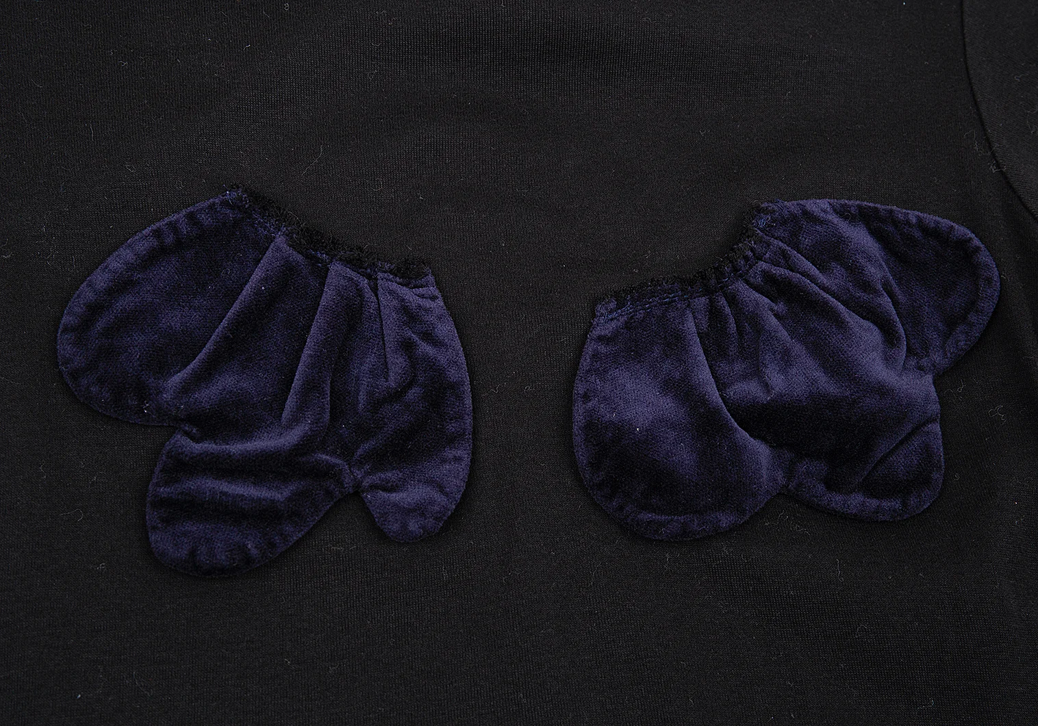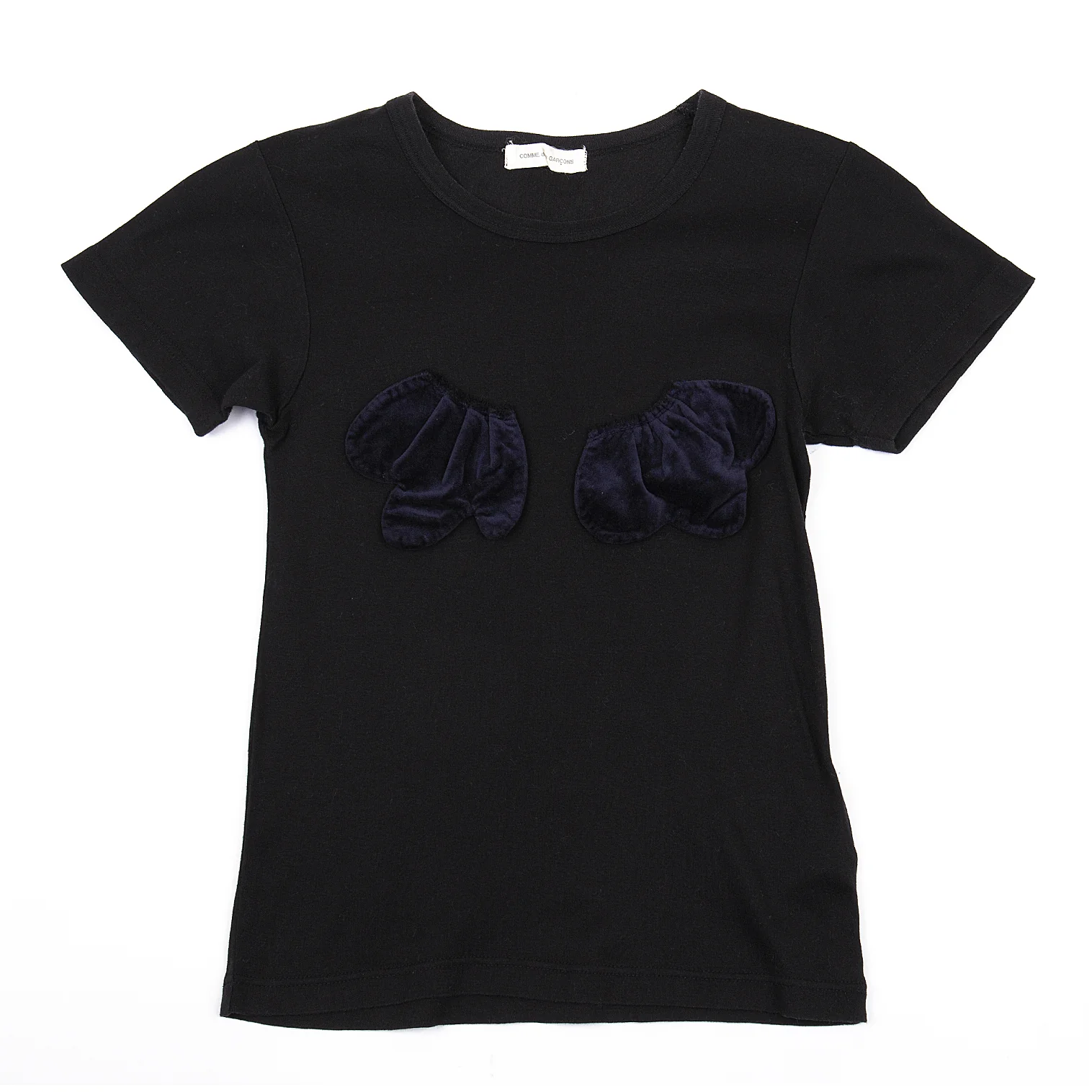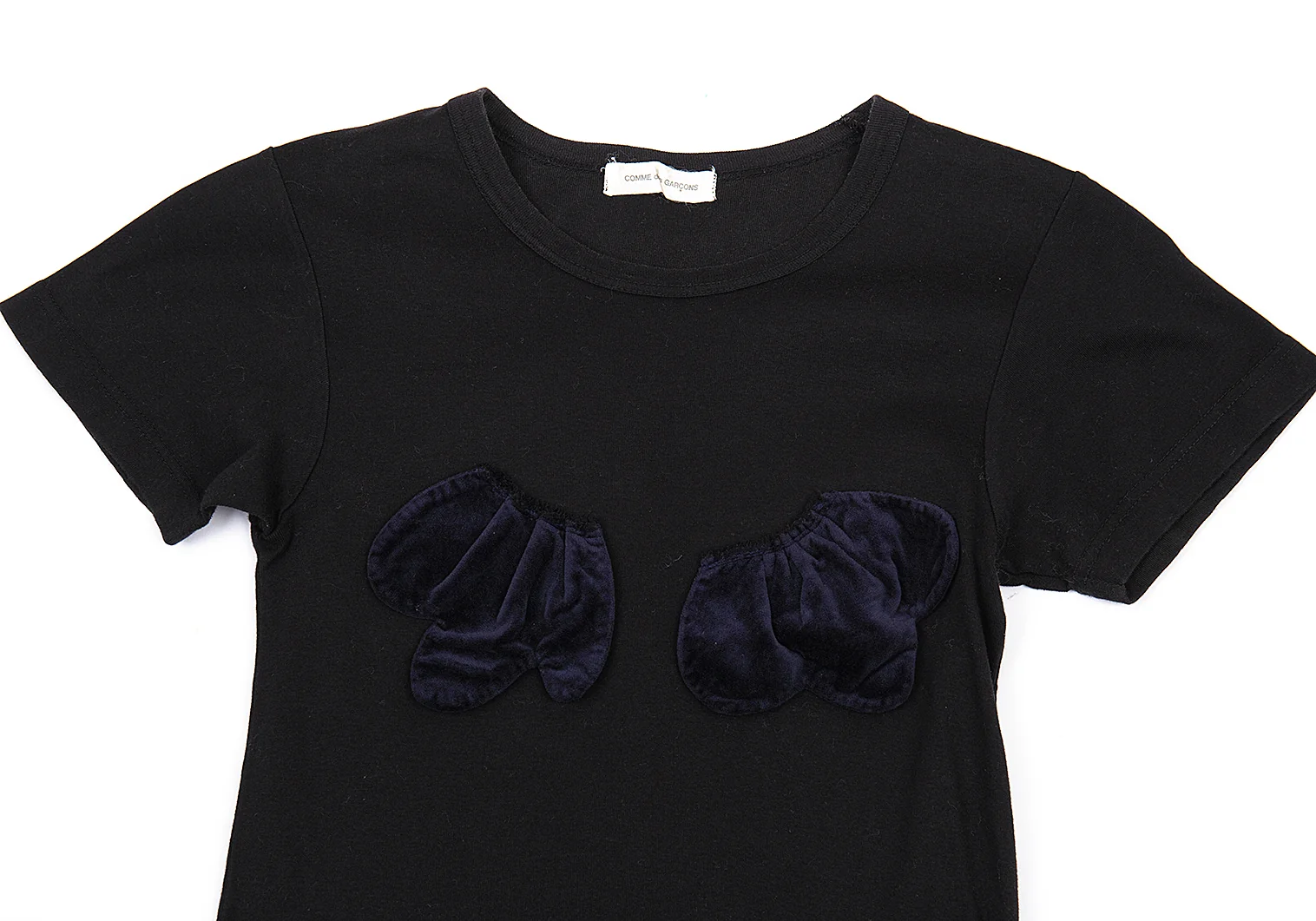 コムデギャルソンCOMME des GARCONS ベロアモチーフ装飾Tシャツ 黒XS位