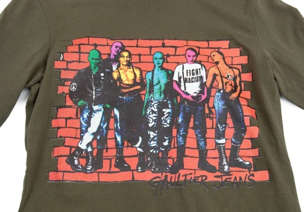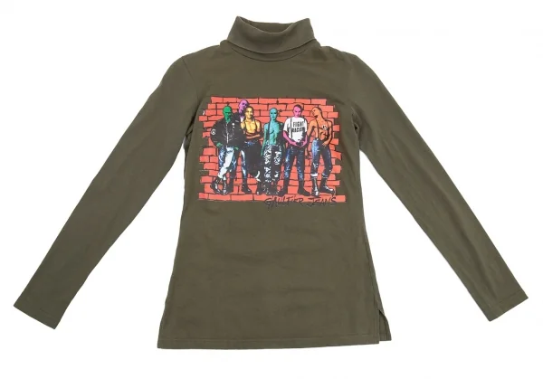 ゴルチエジーンズGAULTIER JEAN'S FIGHT RACISMグラフィックプリントハイネックカットソー カーキ40