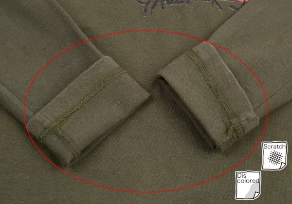 全体的に毛羽立ち・着用感あり、首回り・袖先・袖裏に色褪せと毛羽立ちがあります(画像参照)。その他目立ったシミ、汚れ、ほつれ等ありません。クリーニング済み