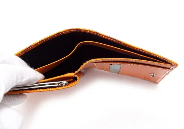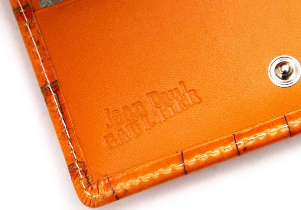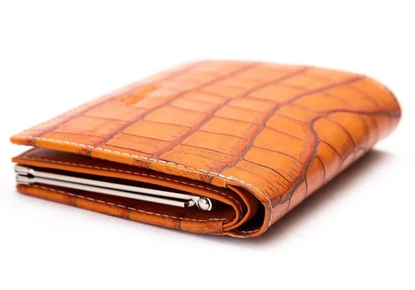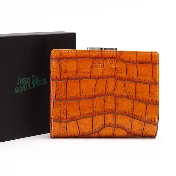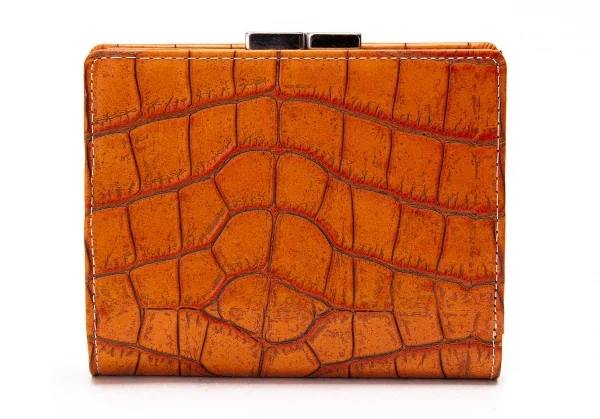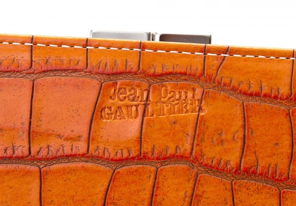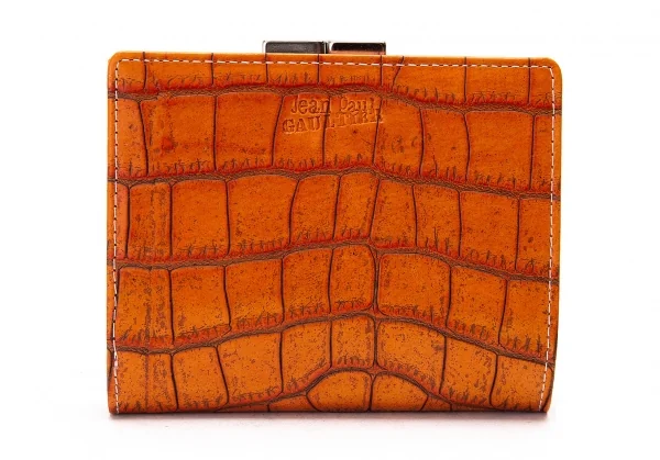 ジャンポールゴルチエJean Paul GAULTIER クロコダイル型押し二つ折りウォレット 財布 オレンジブラウン