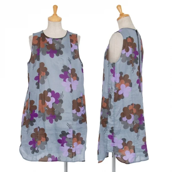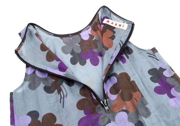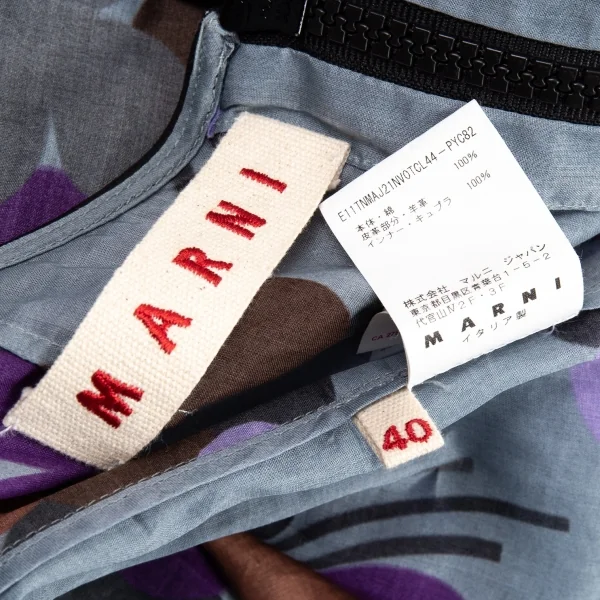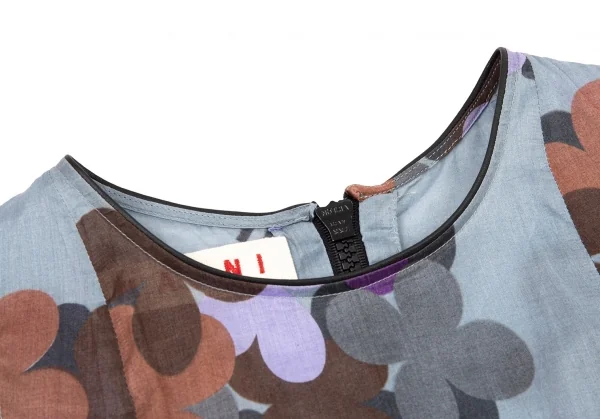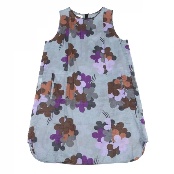 マルニMARNI レザートリム花柄ワンピース ブルーグレー紫他40