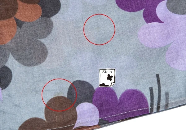 インナーは欠品しています。透け感のある生地です。前身頃・前裾に薄シミ、前裾に小穴があります(画像参照)。その他目立ったシミ、汚れ、ほつれ等ありません。クリーニング済み
