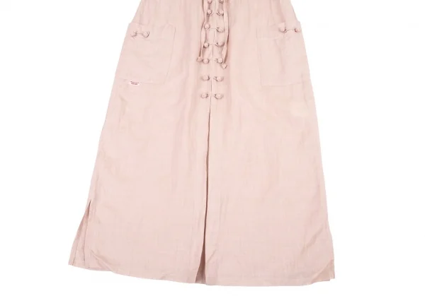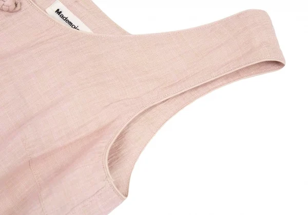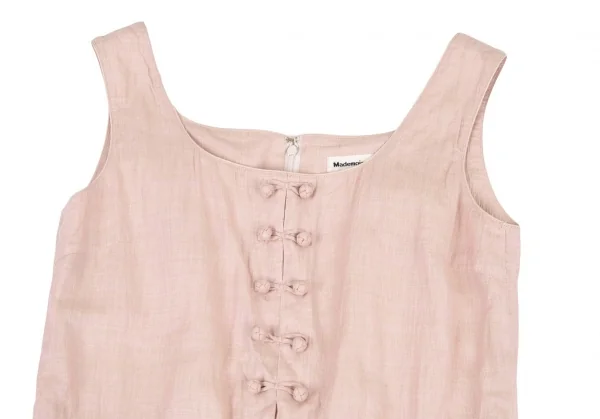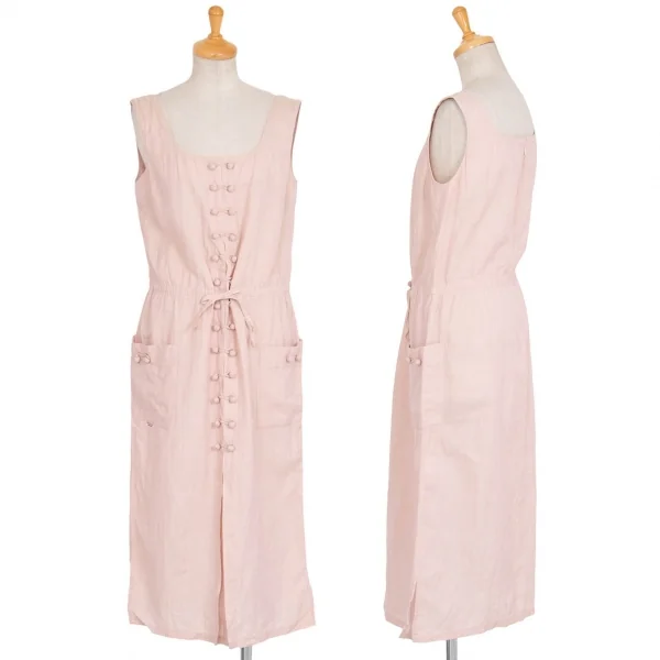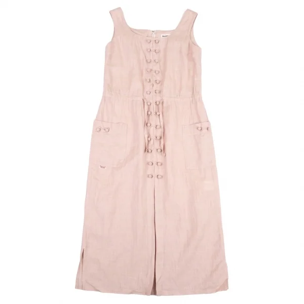 マドモアゼルノンノンMademoiselle NON NON コットンリネンチャイナボタンデザインノースリーブワンピース ベージュピンク38M