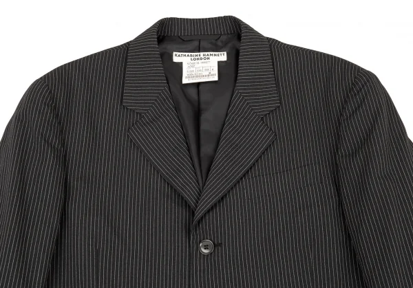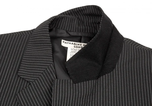 キャサリンハムネットロンドンKATHARINE HANETT LONDON ウールレーヨンストライプサマージャケット 黒白M